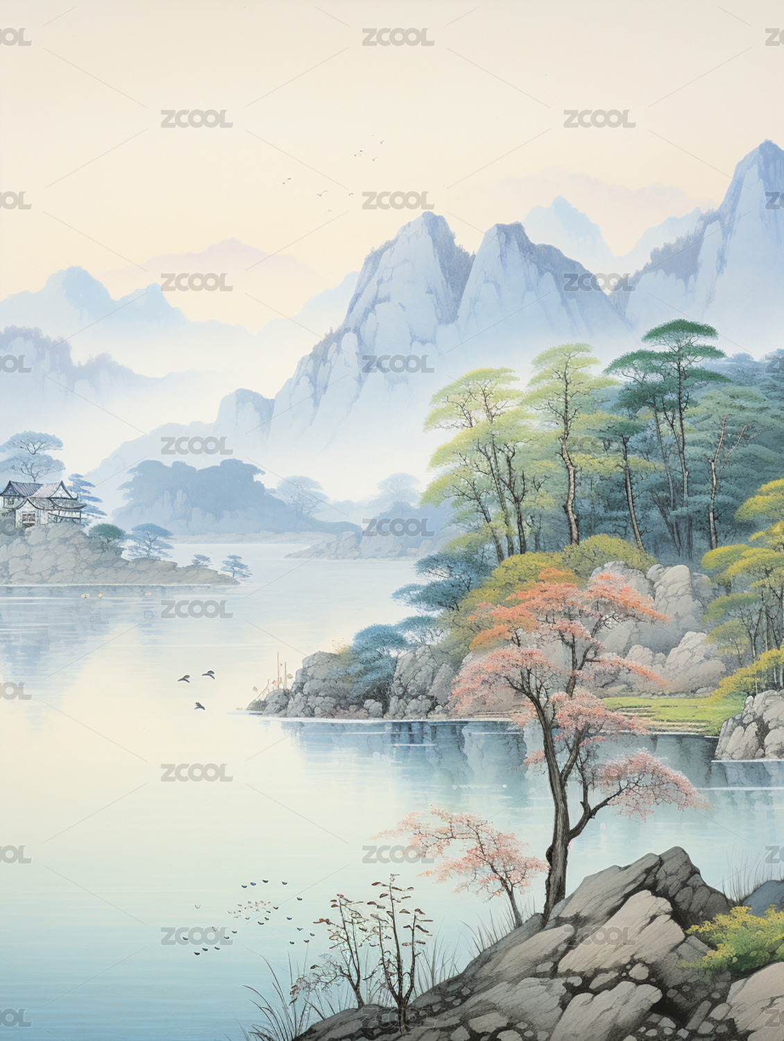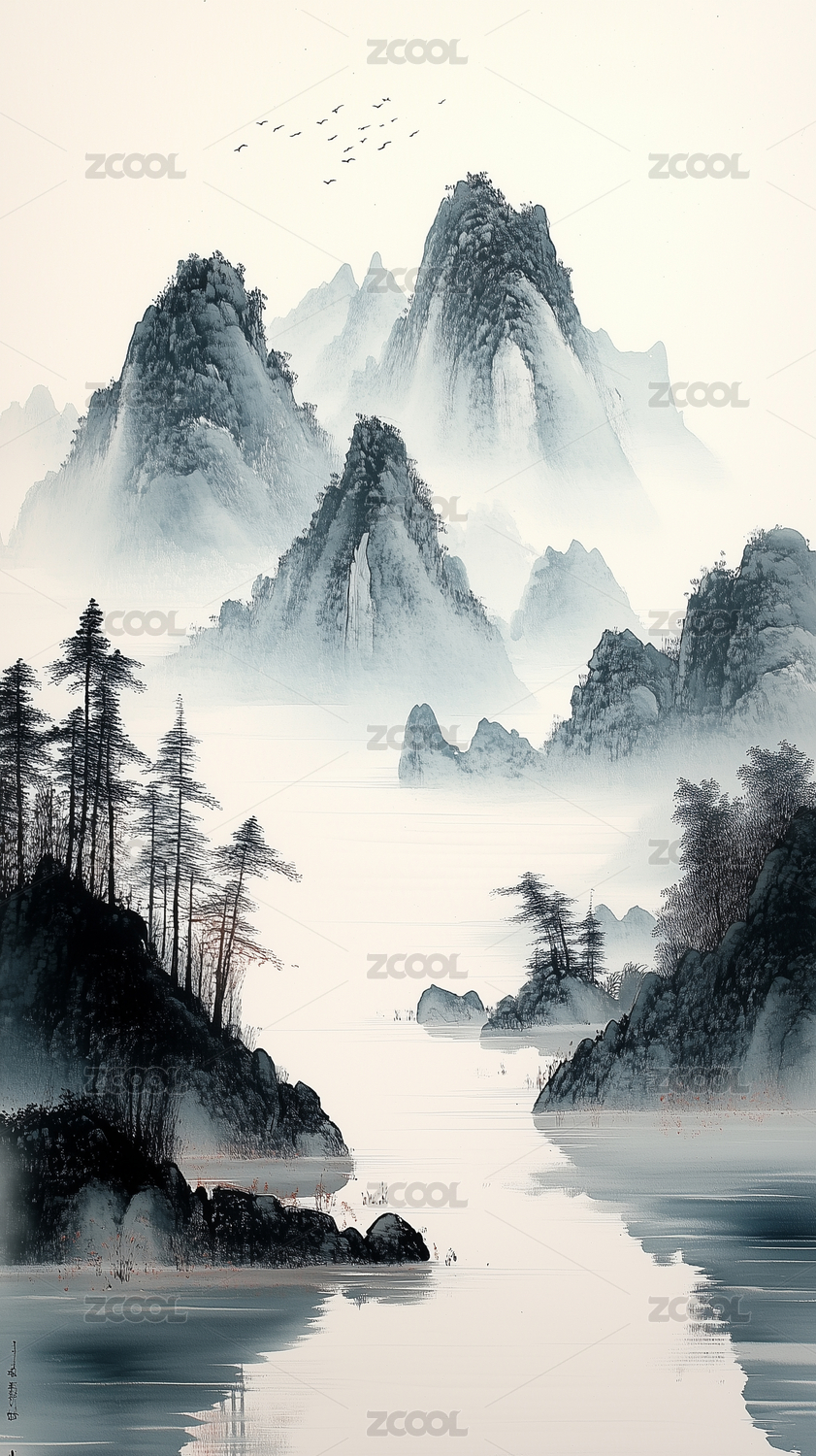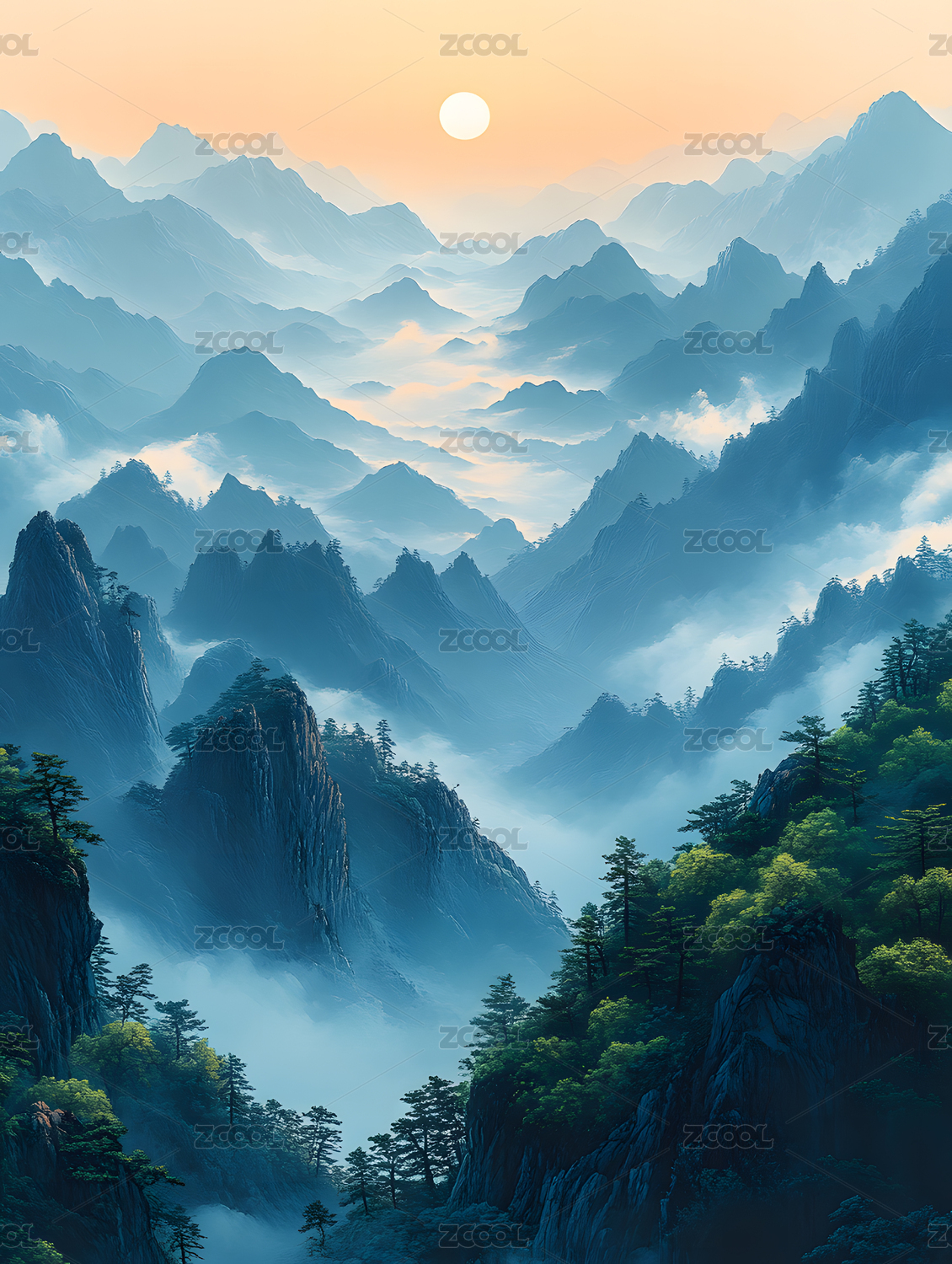 背景,壁纸,插画,蓝色,概念,流动,简单,云景,青色,山水画