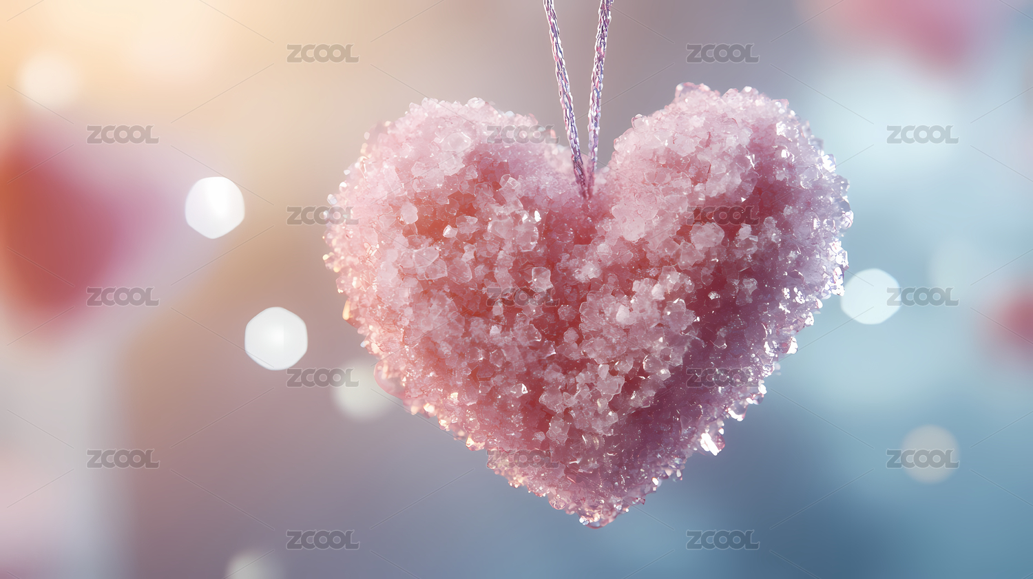 粉色心形与晶体围绕梦幻氛围