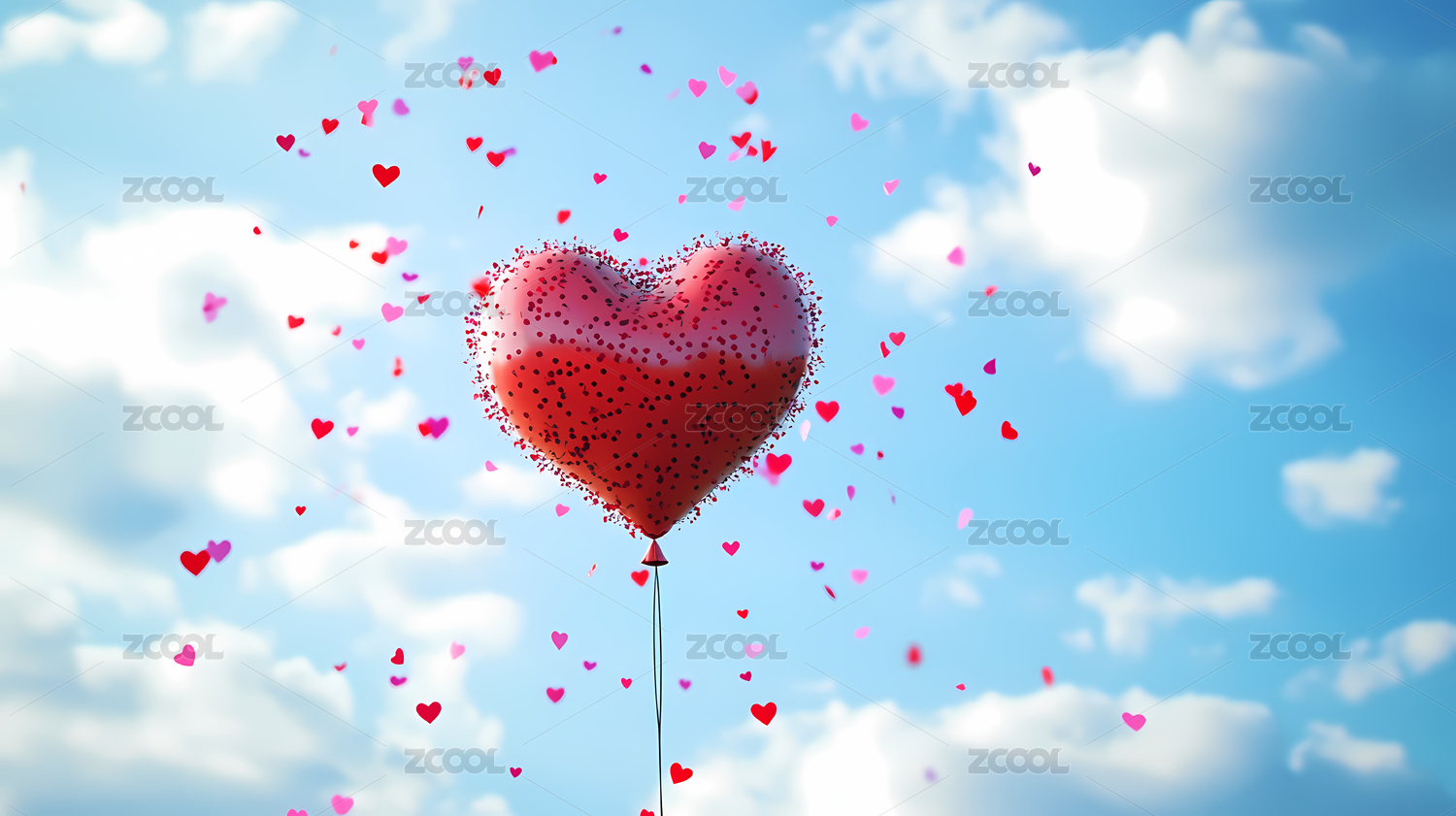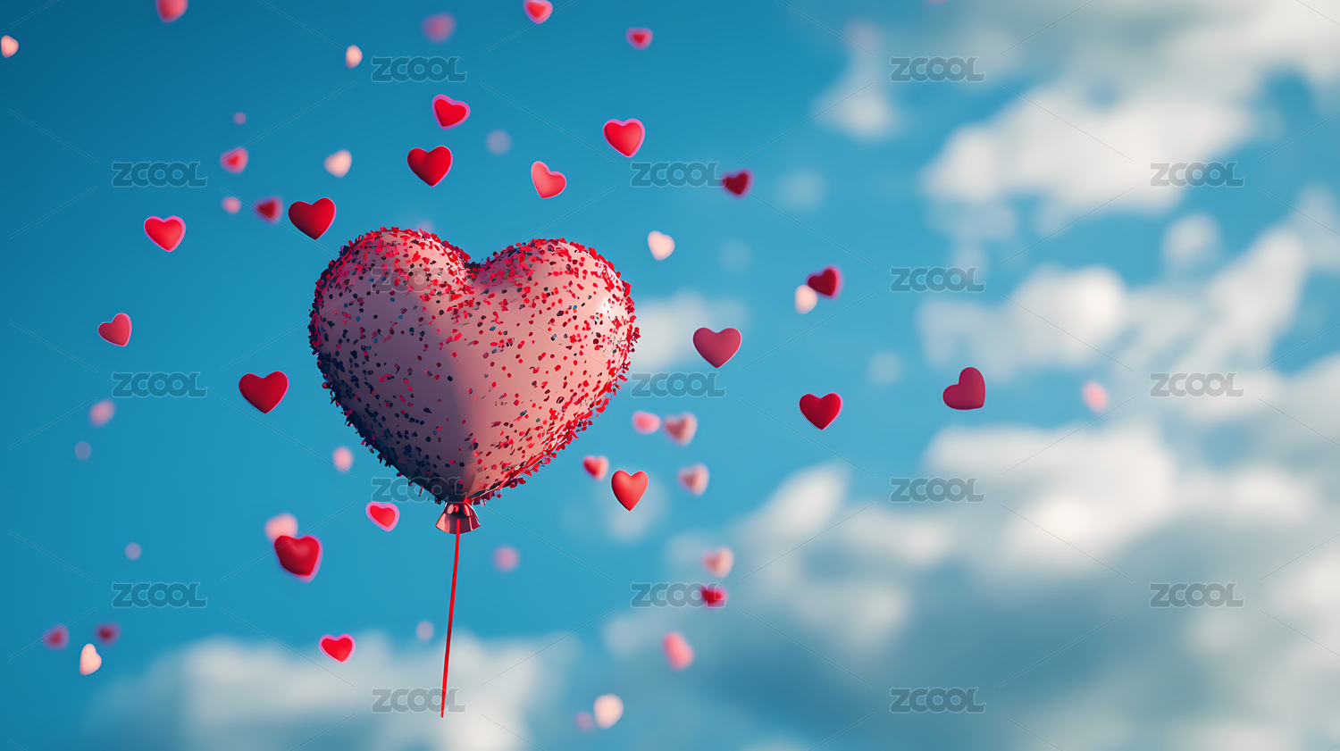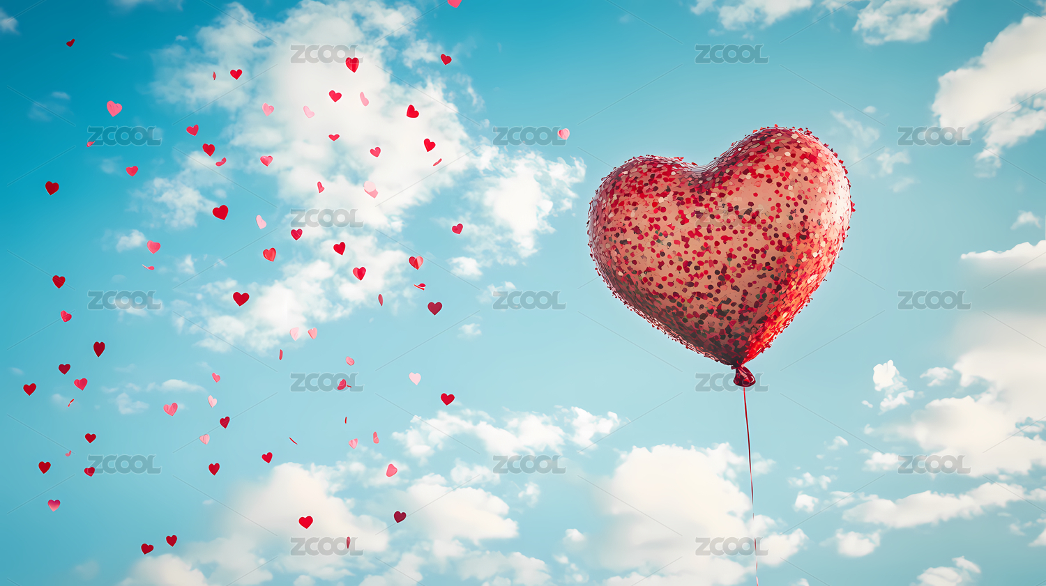 红色心形气球与彩纸屑的浪漫氛围