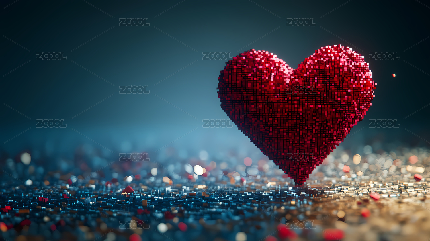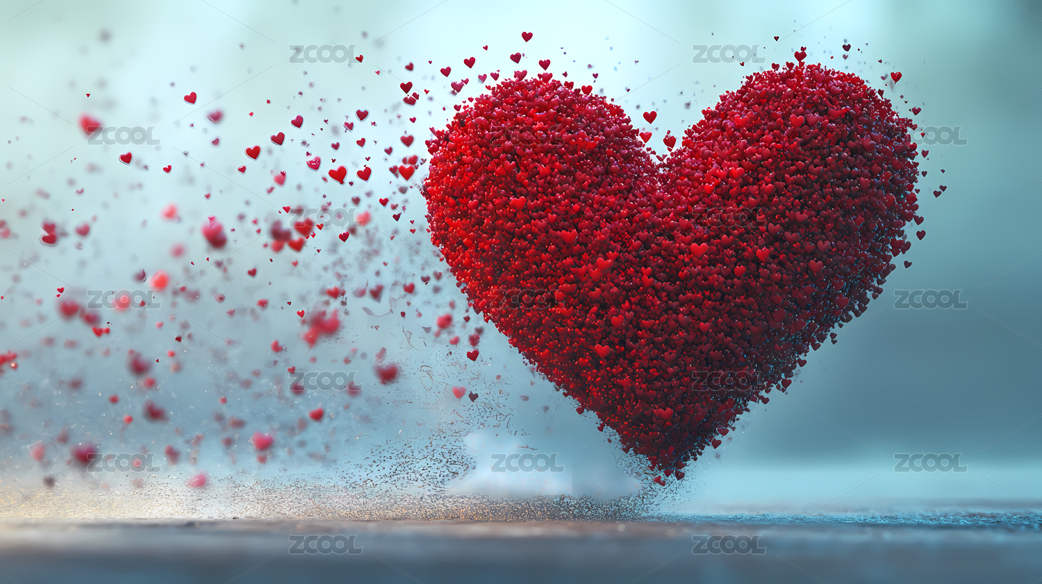 颗粒漂浮中的浪漫红心