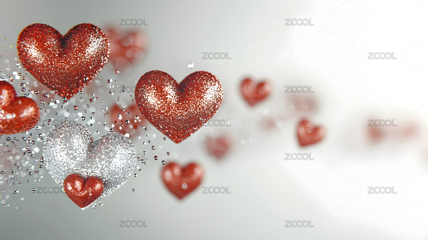 飞散在空中的红色爱心背景