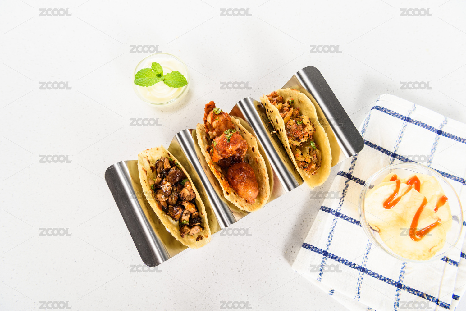 手拿一个剥皮的熟虾放入墨西哥卷上