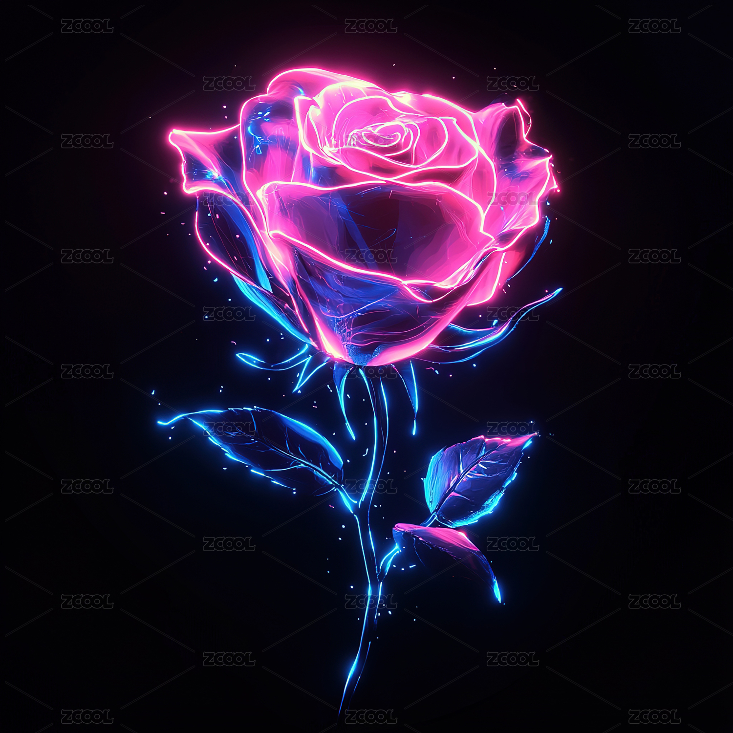 散发着霓虹光芒的玫瑰花