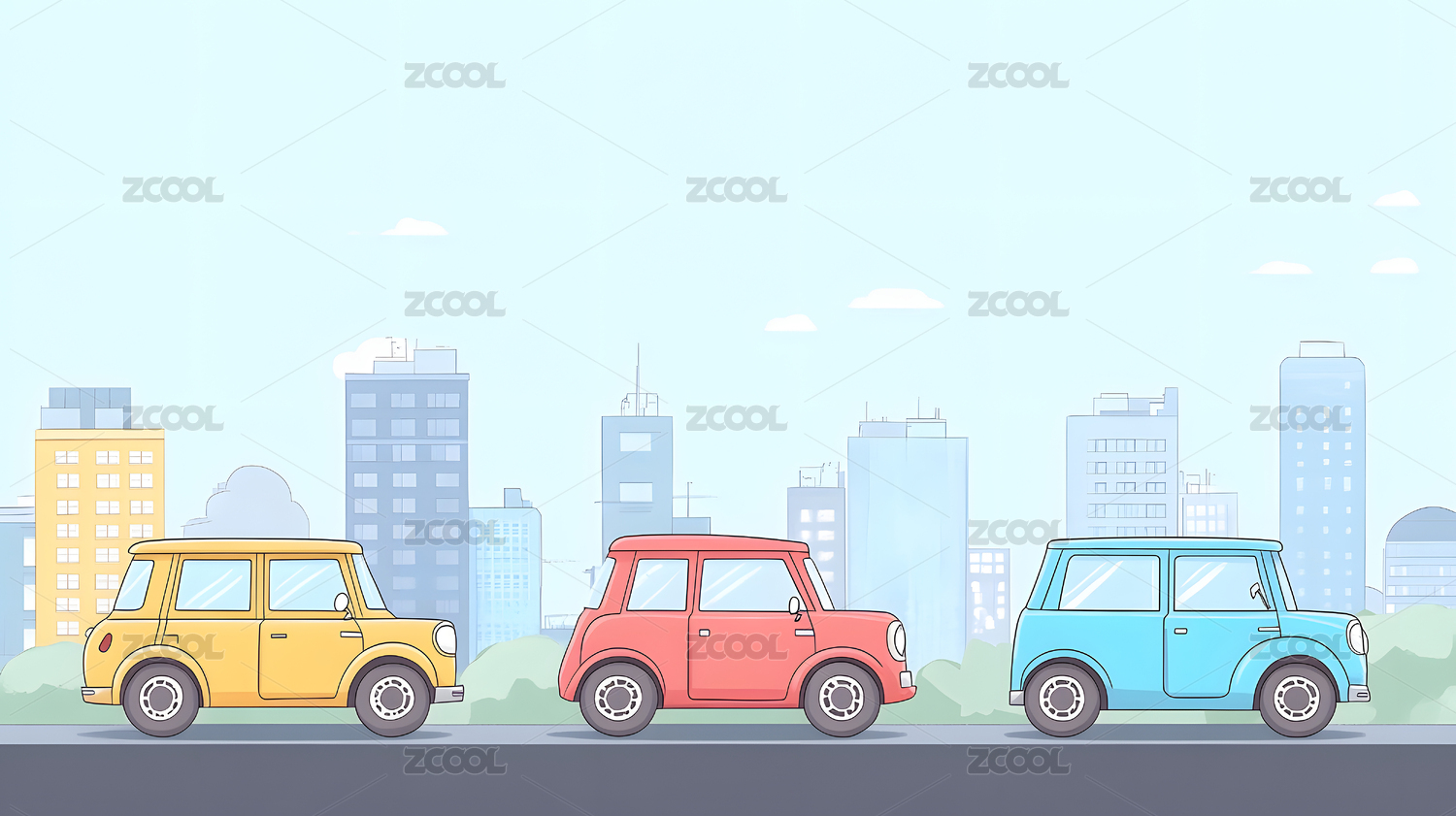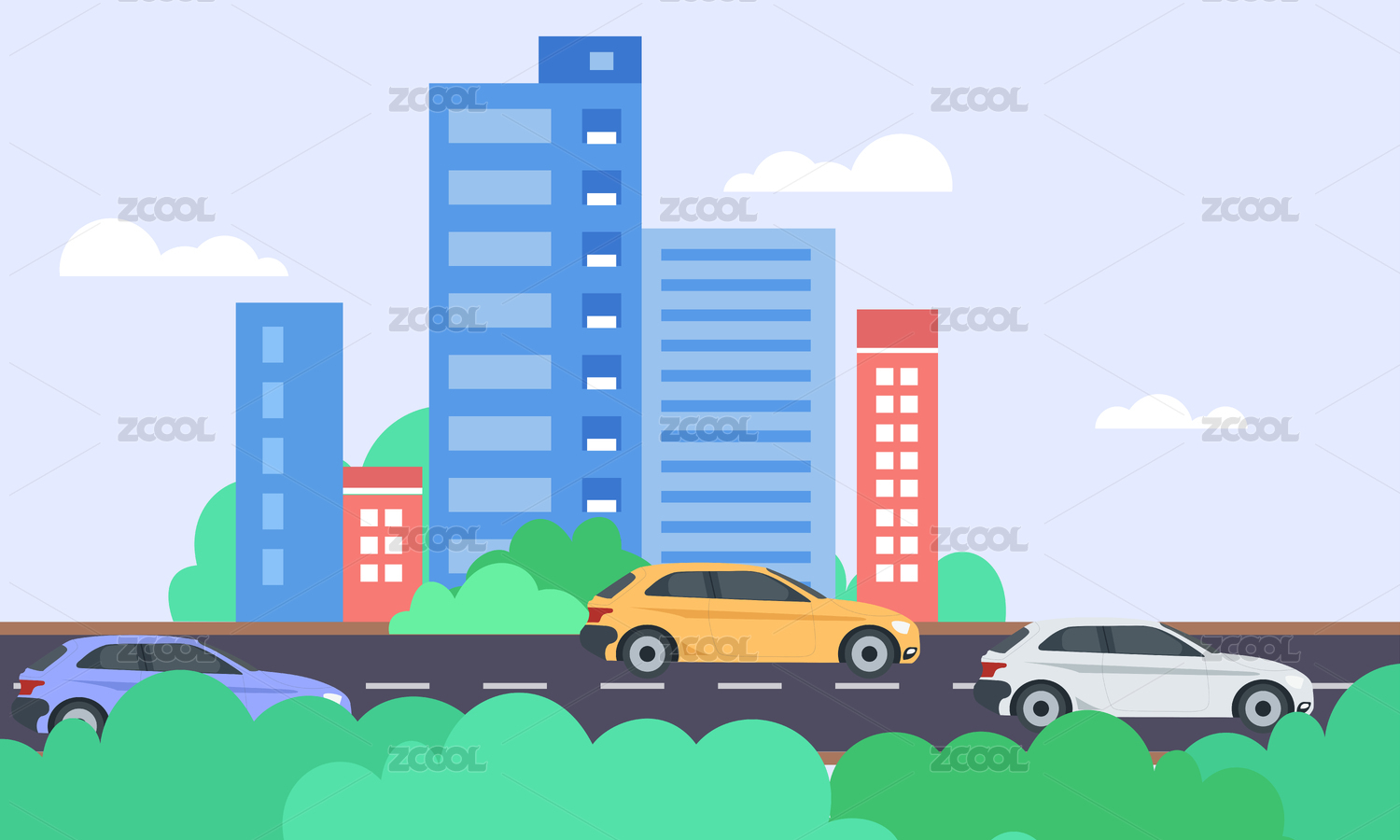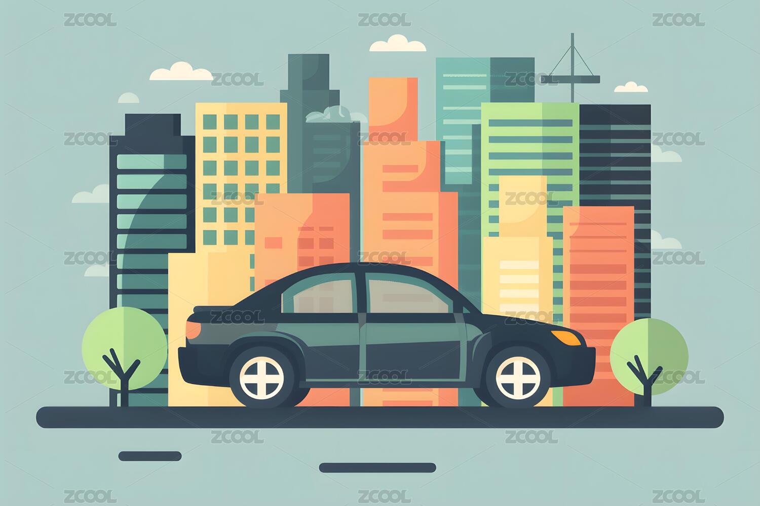 城市景观中行驶的汽车扁平化插画