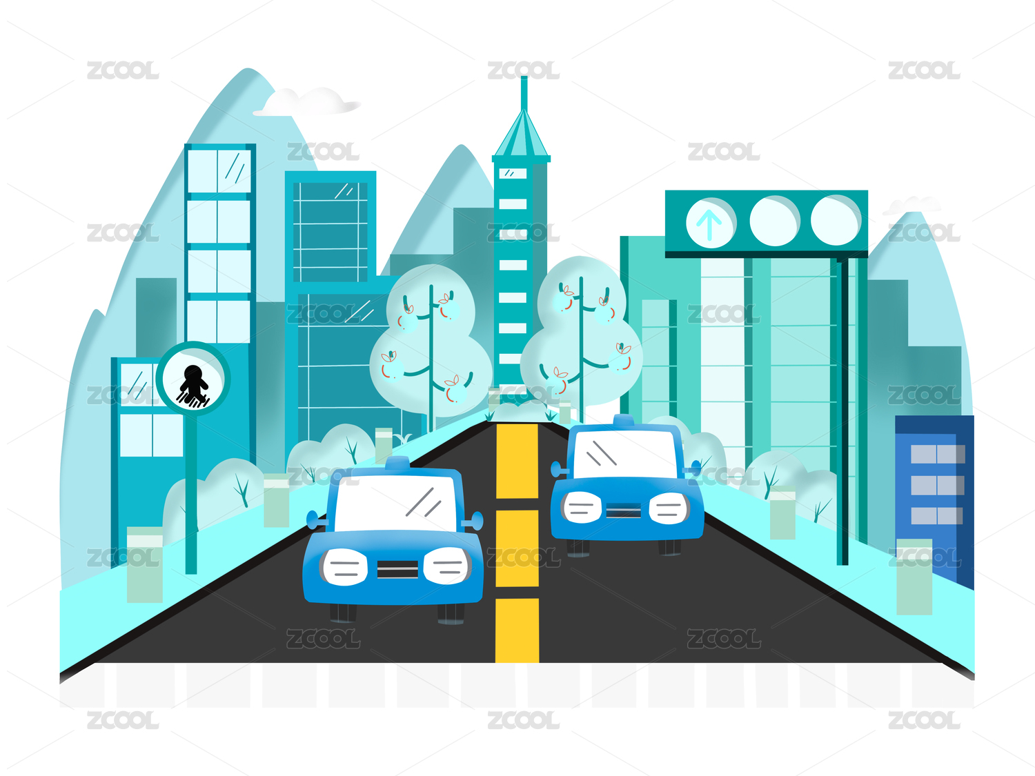 城市交通矢量插画