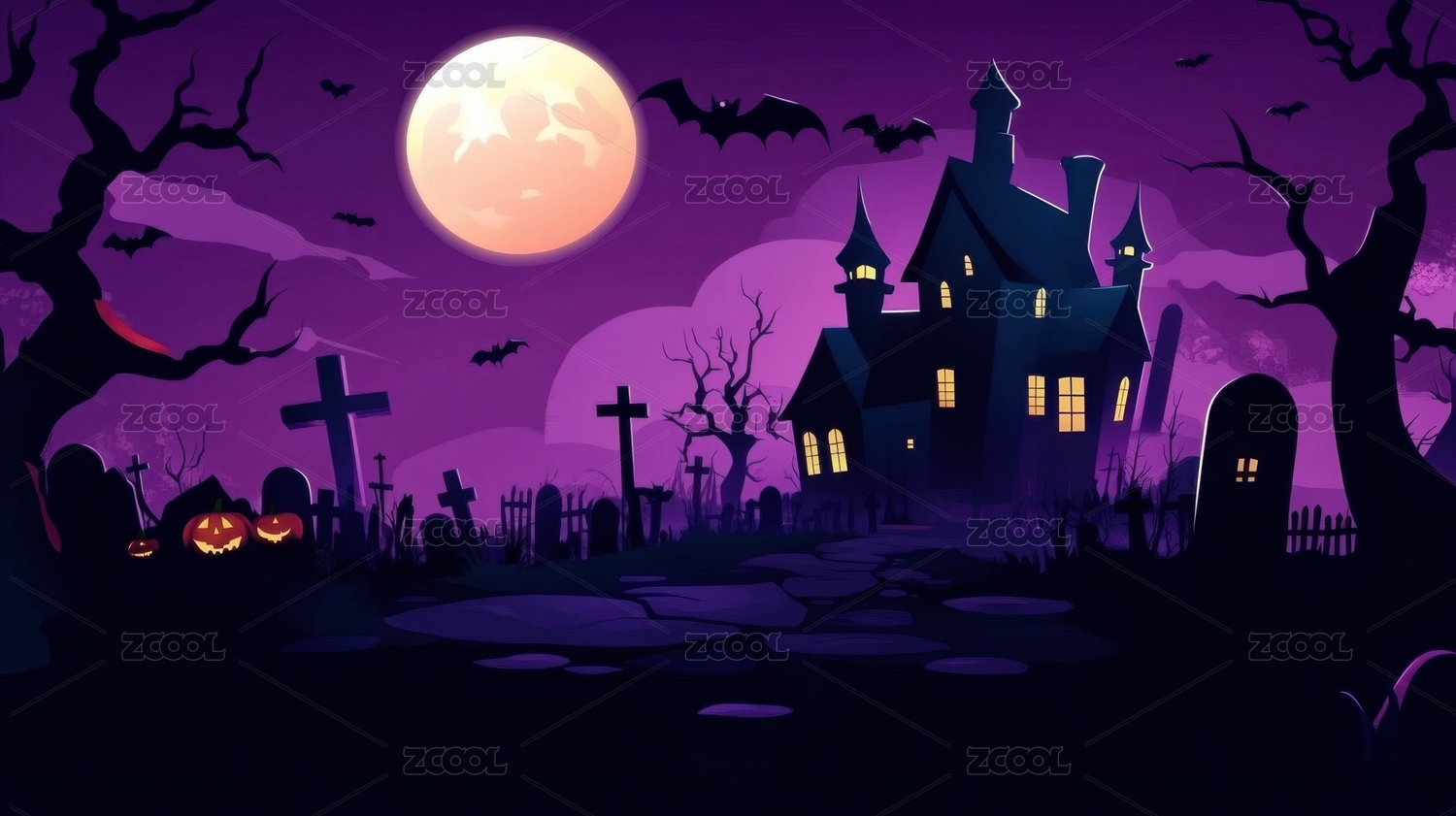 万圣节,素材,插画,幽灵,南瓜,鬼,鬼怪,蝙蝠,恐怖,夜晚