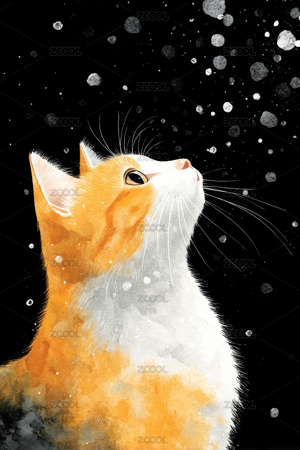 扁平小猫插画明亮一只可爱宠物猫绘画