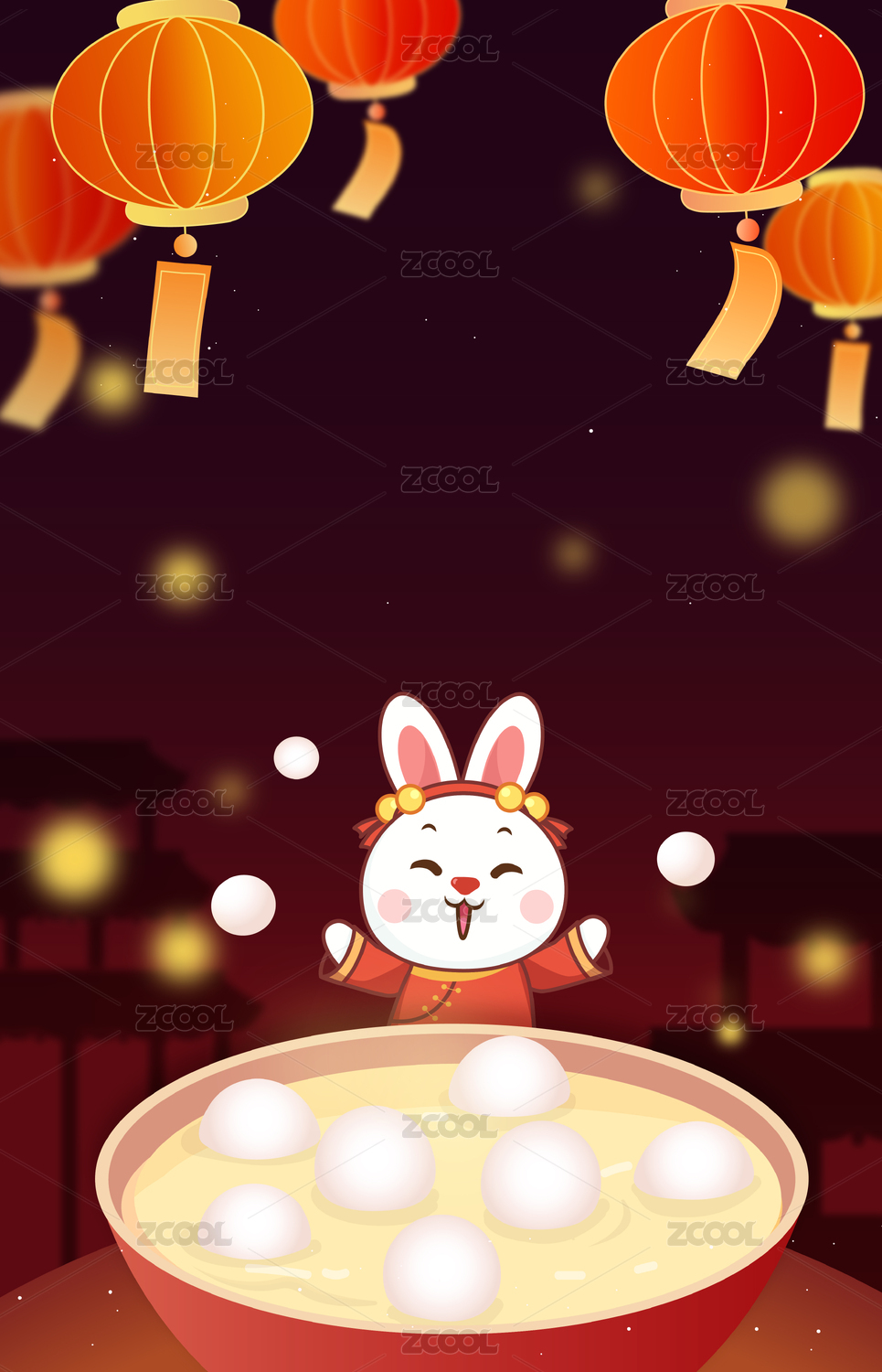 元宵节灯会一大碗汤圆和福牛抱着红包的喜庆