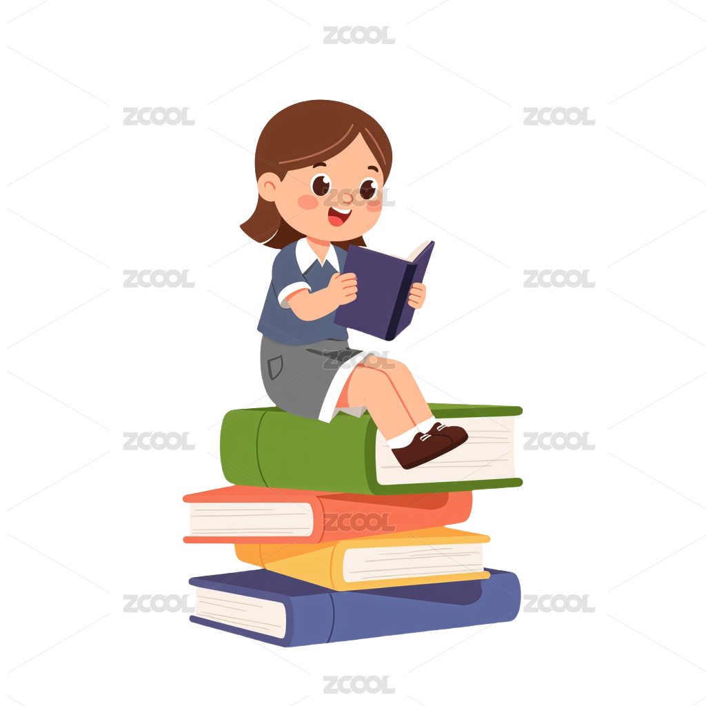 女孩图书馆看书卡通