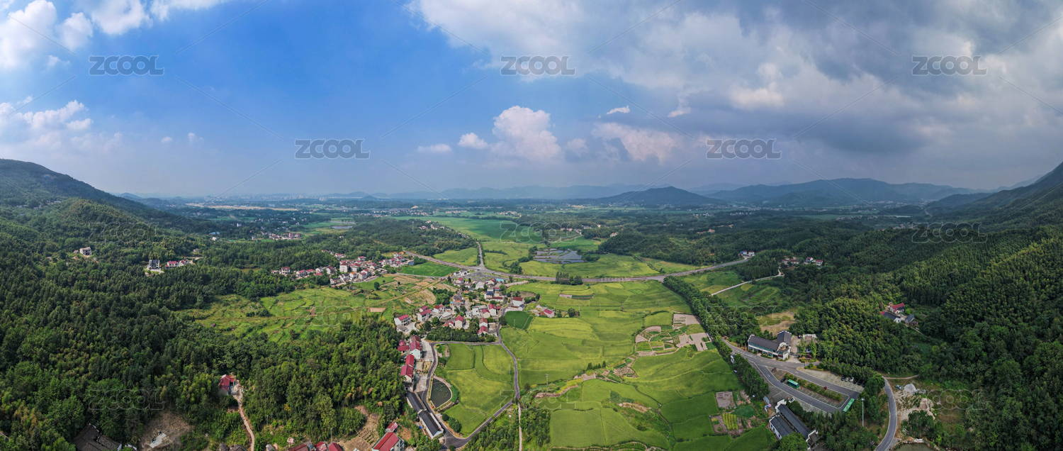 航拍安徽池州石台秋蒲河畔农村田野风光全景