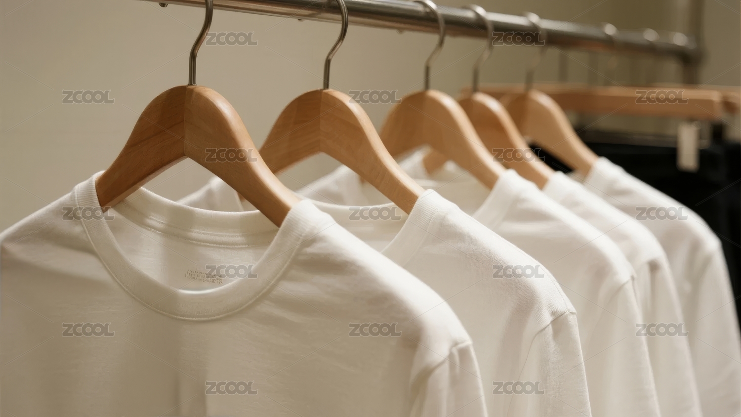 衣架上整齐排列的白色T恤