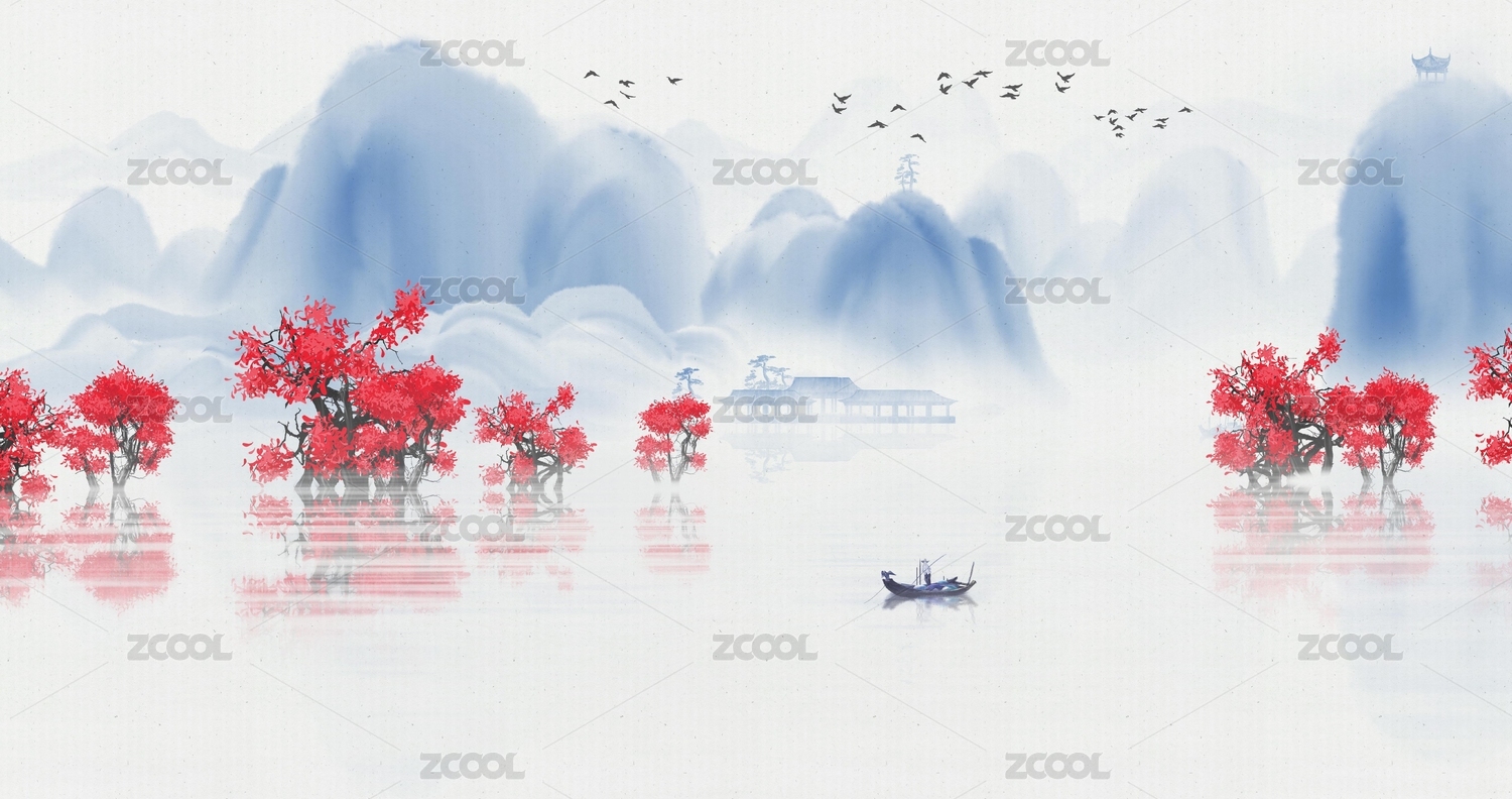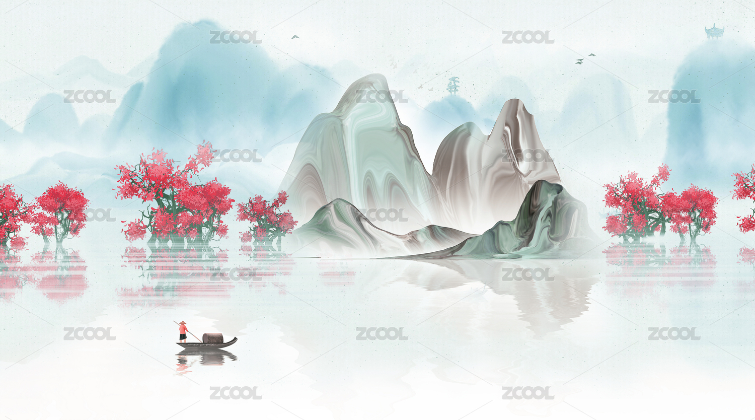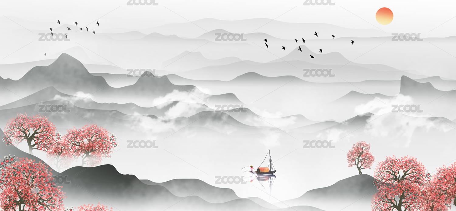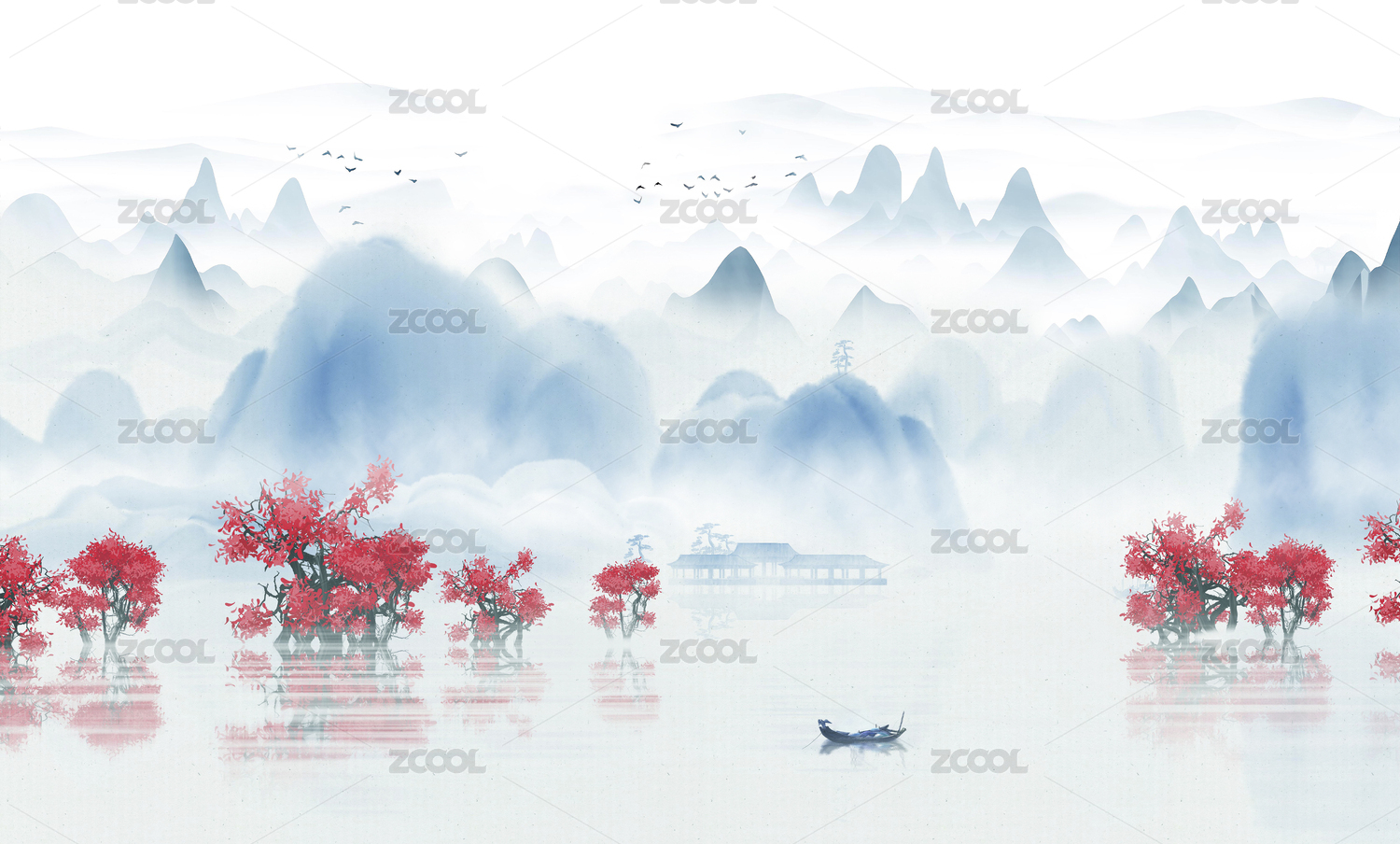 中国风,山水画,中式,水墨,国潮,自然,背景,国画,淡雅,插画