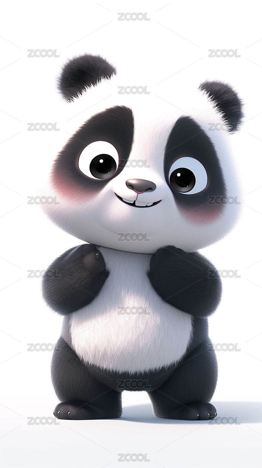地上坐着一只熊猫熊上面放着一朵花高清图片