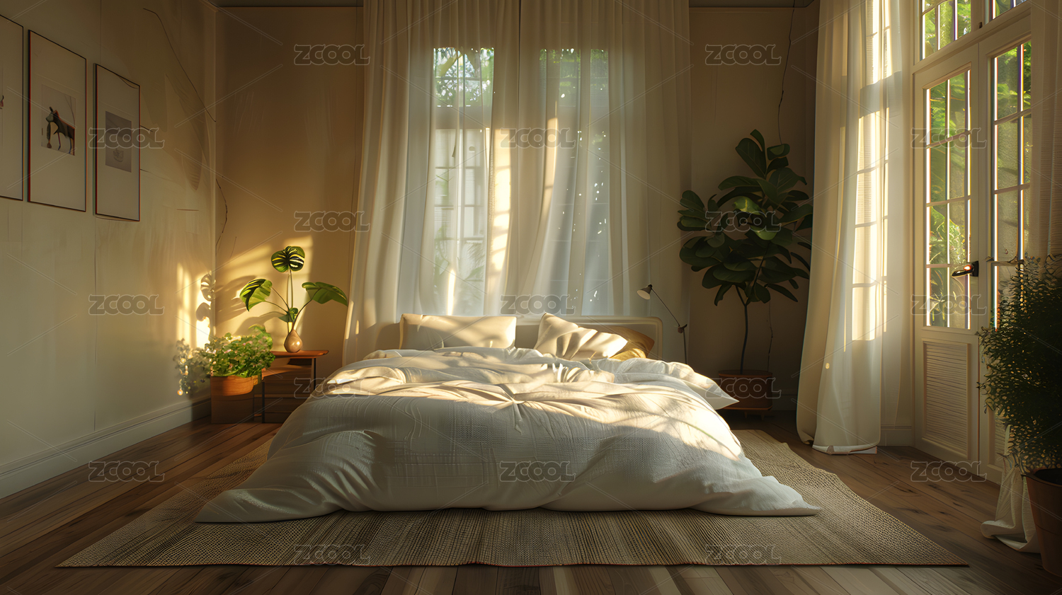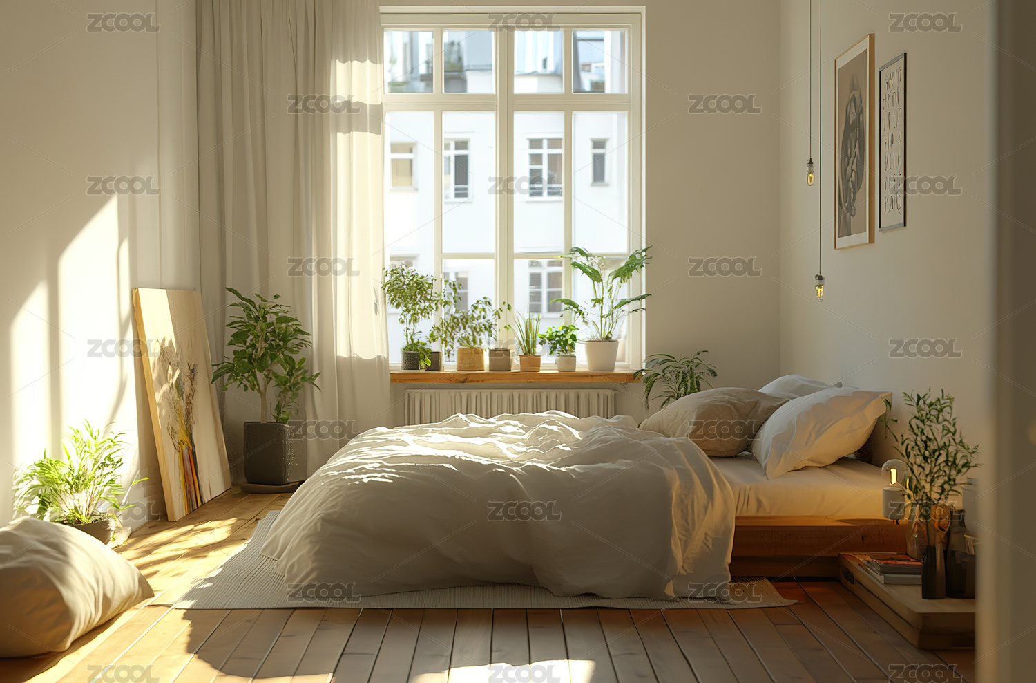 早晨,日光,太阳光,光线,卧室,绿植,明亮,室内