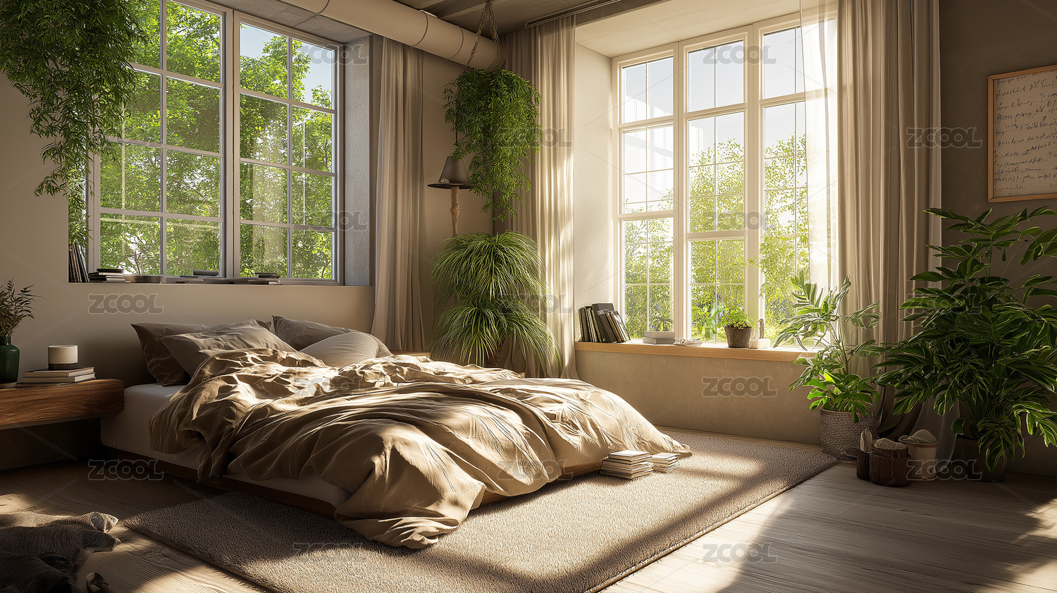 绿植环绕的阳光卧室温馨自然风
