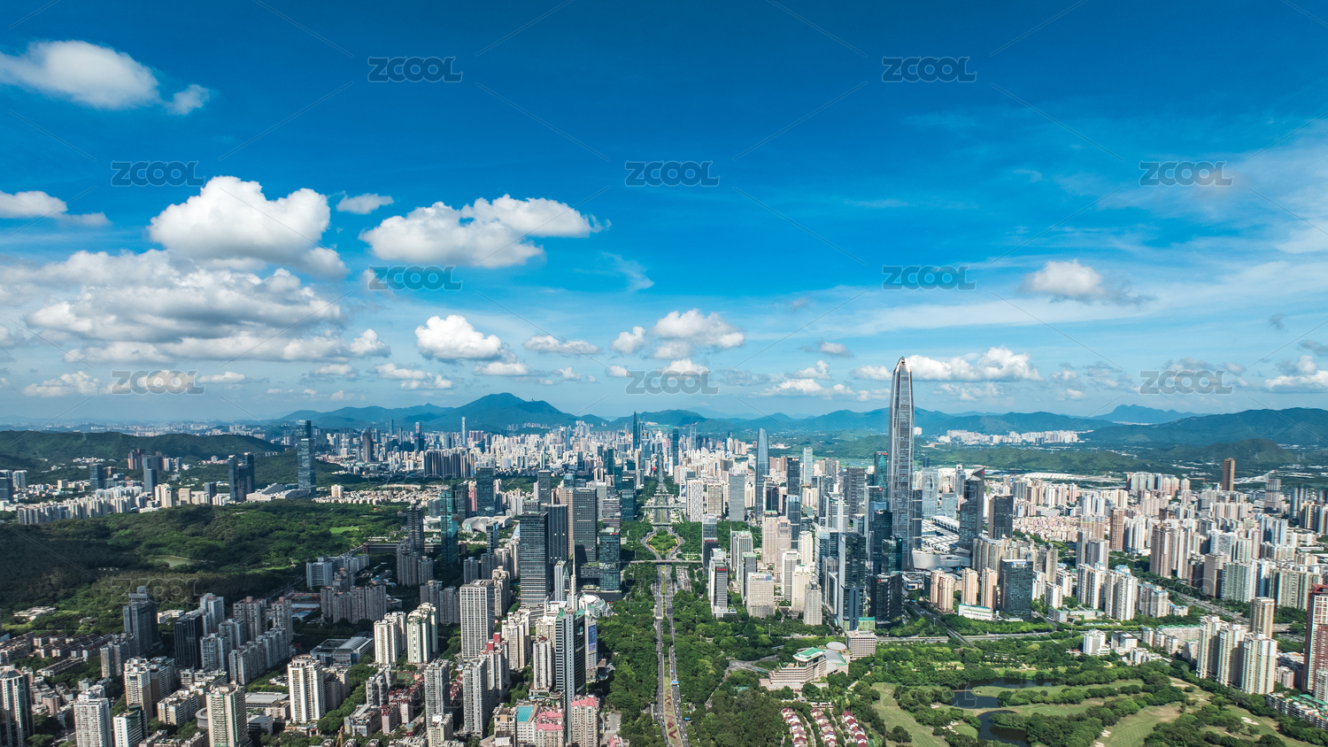 蓝天白云下的深圳市中心