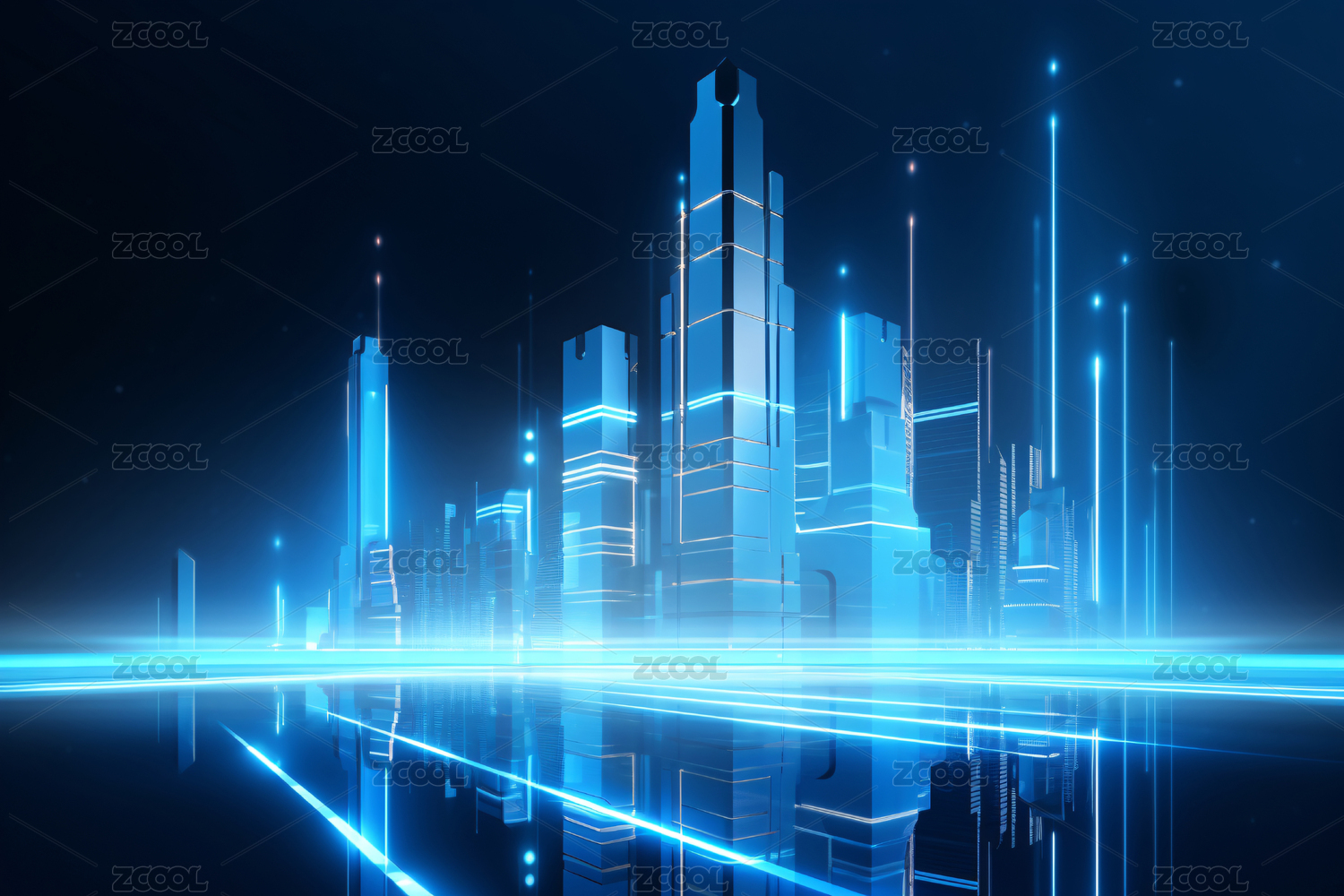蓝色科技智慧城市科幻概念场景