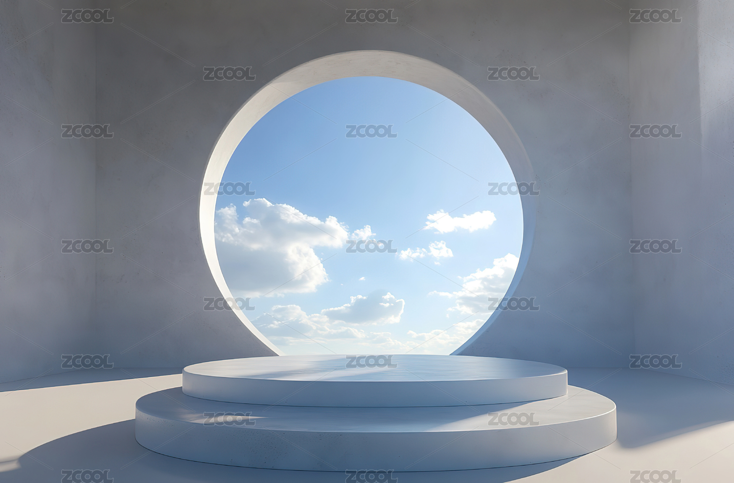 圆形窗框中的蓝天白云
