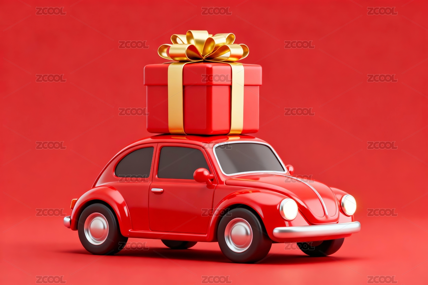 红色汽车礼盒喜庆展示场景