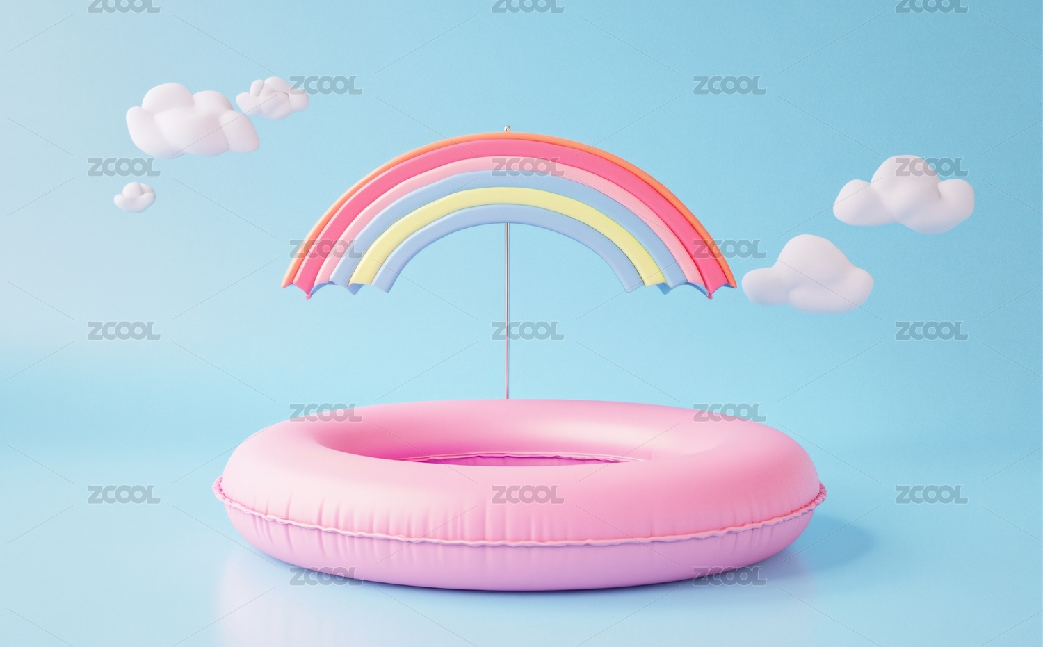 图像,三维图形,C4D软件,儿童,插画,卡通,游泳池,海滩遮阳伞,柔和,夏天