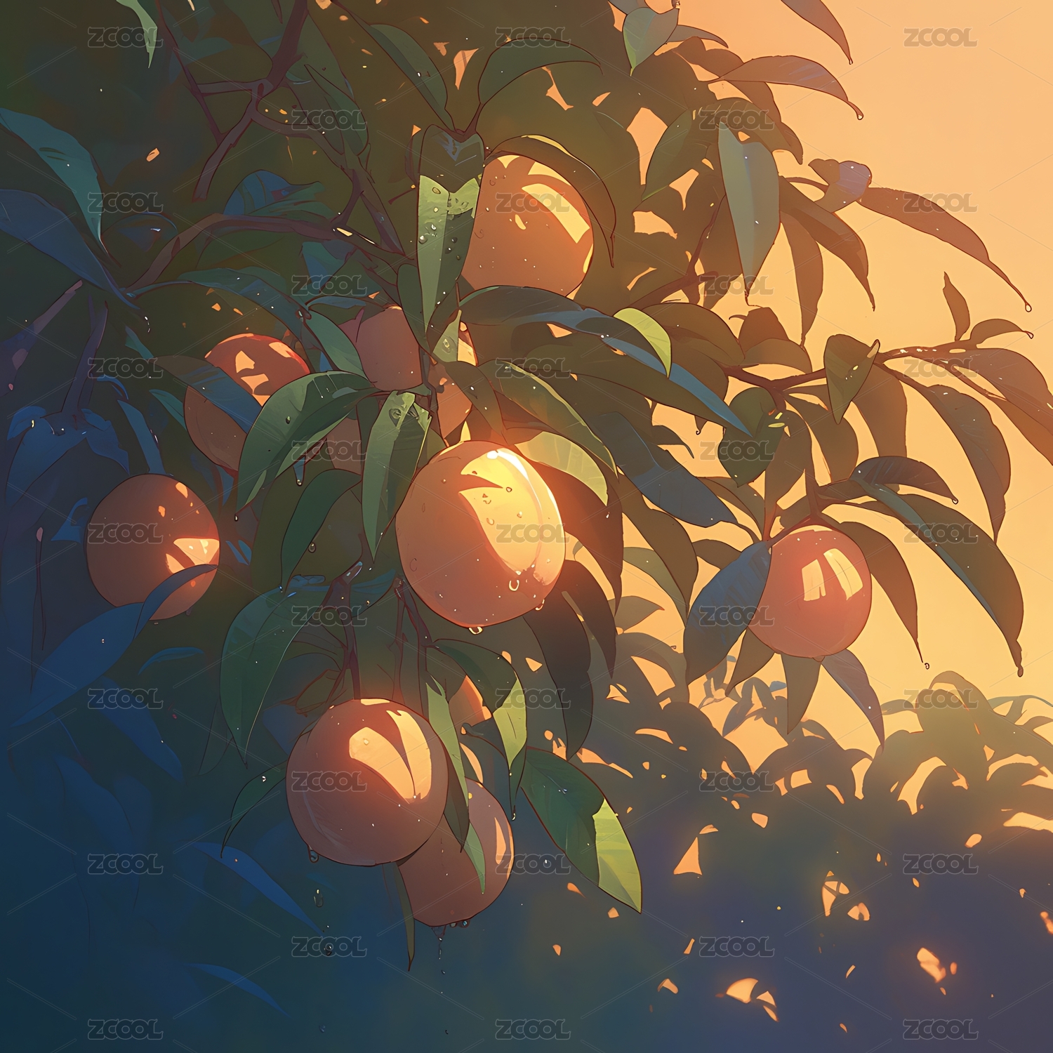 枝头黄果绿叶插画