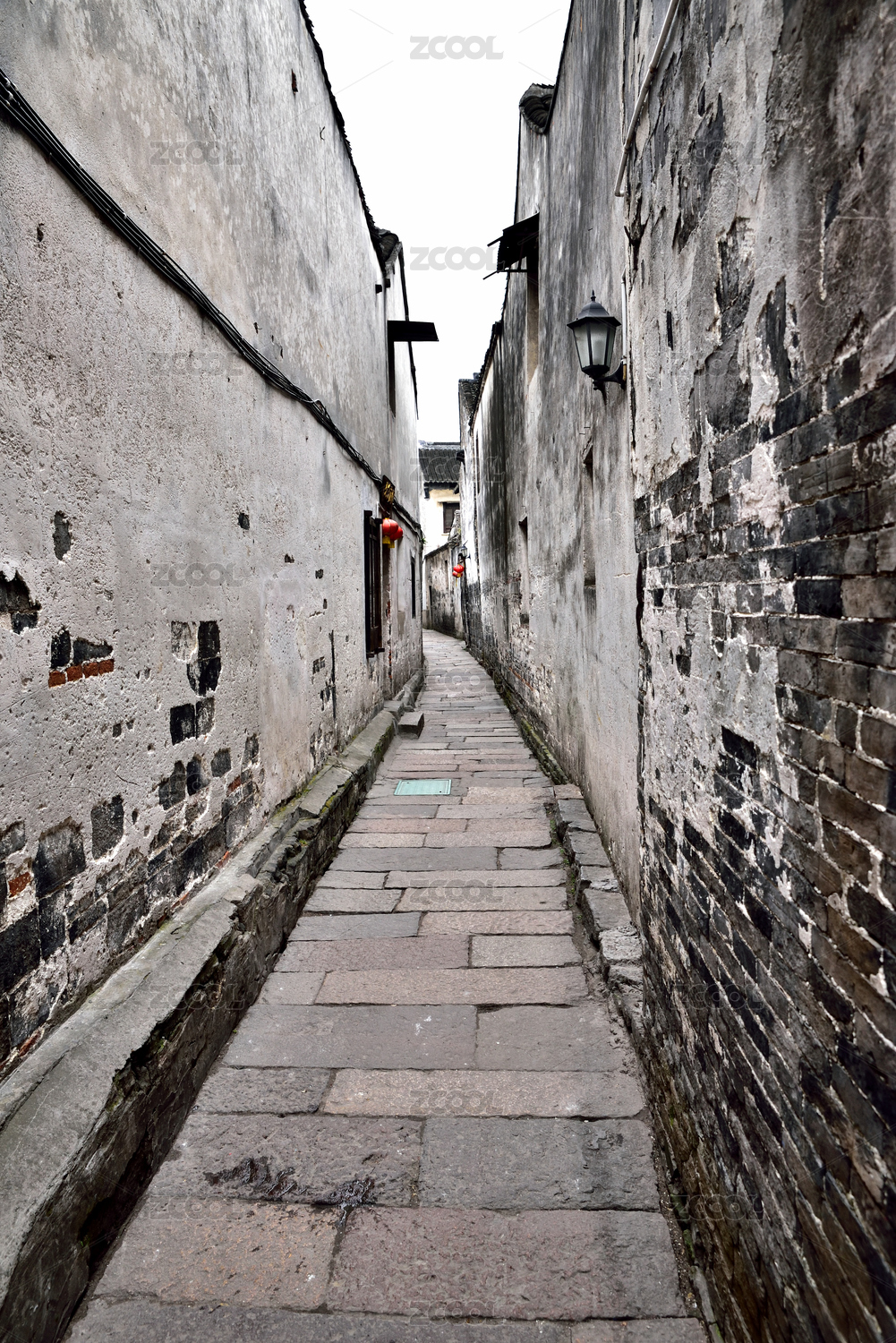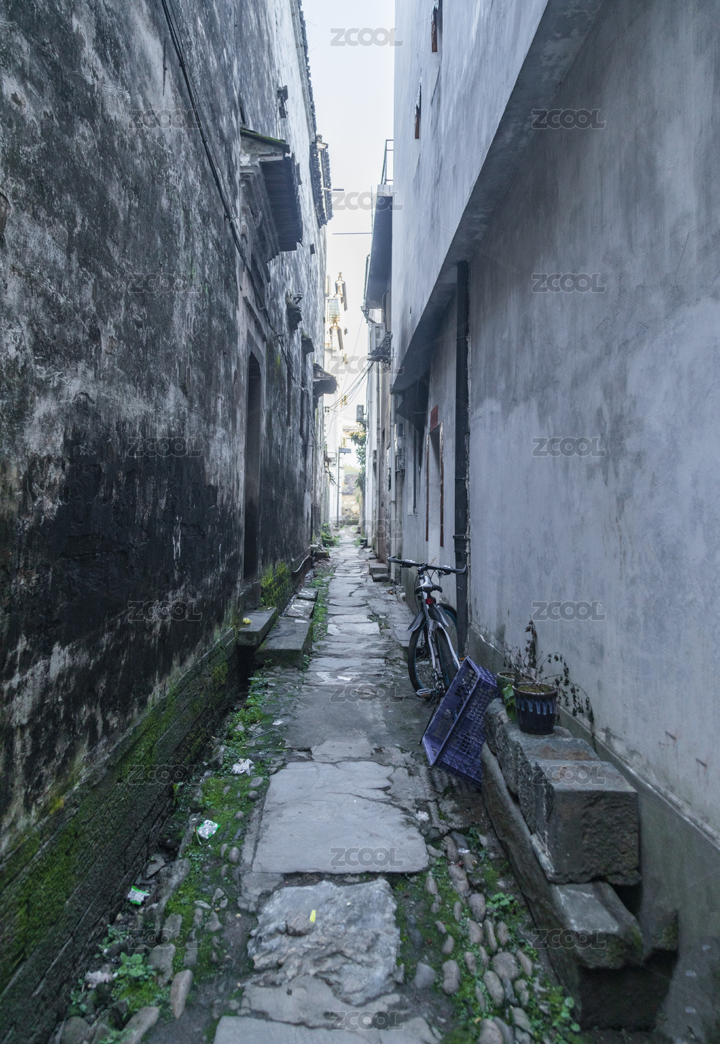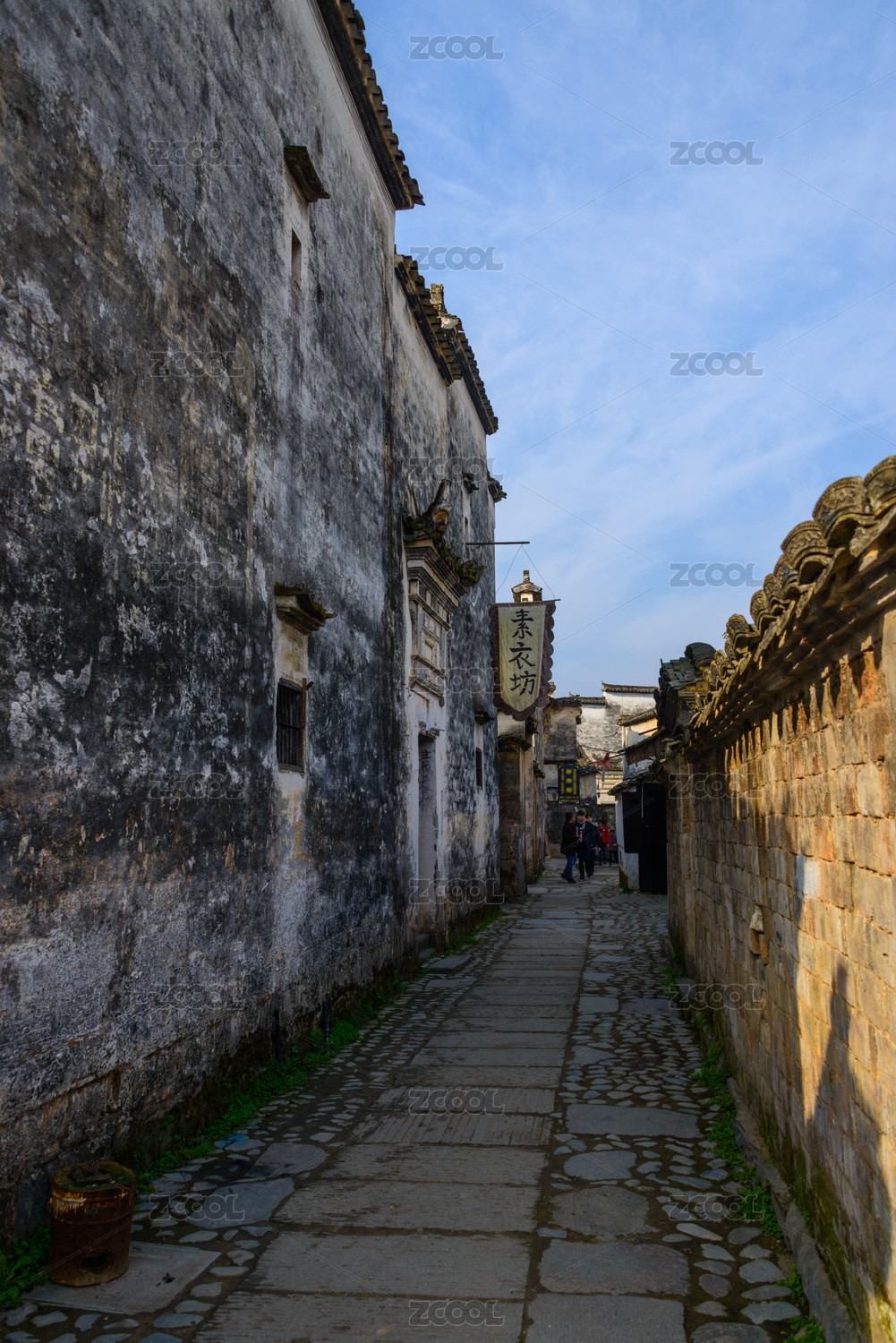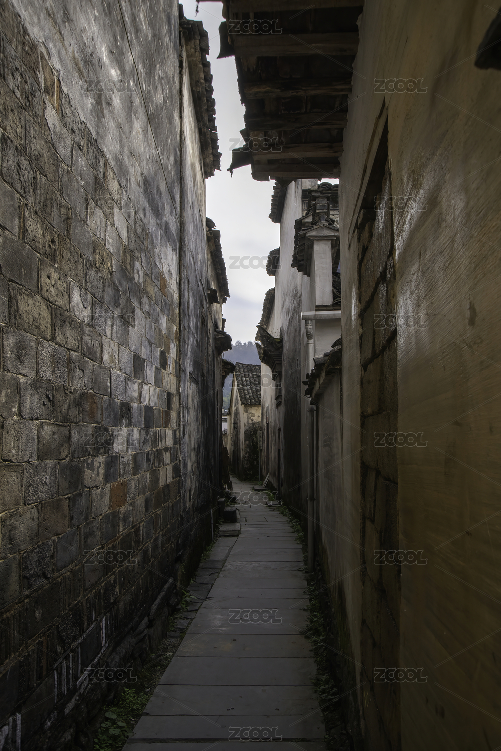 街道,小巷,巷道,石板路,村落,交通,徽派建筑,民居,墙壁,天空