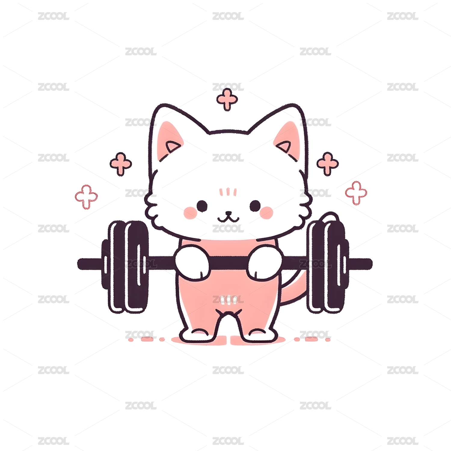AIGCTA2024,卡通,举重,宠物,萌宠,童趣,奋力,努力,吃力,健身