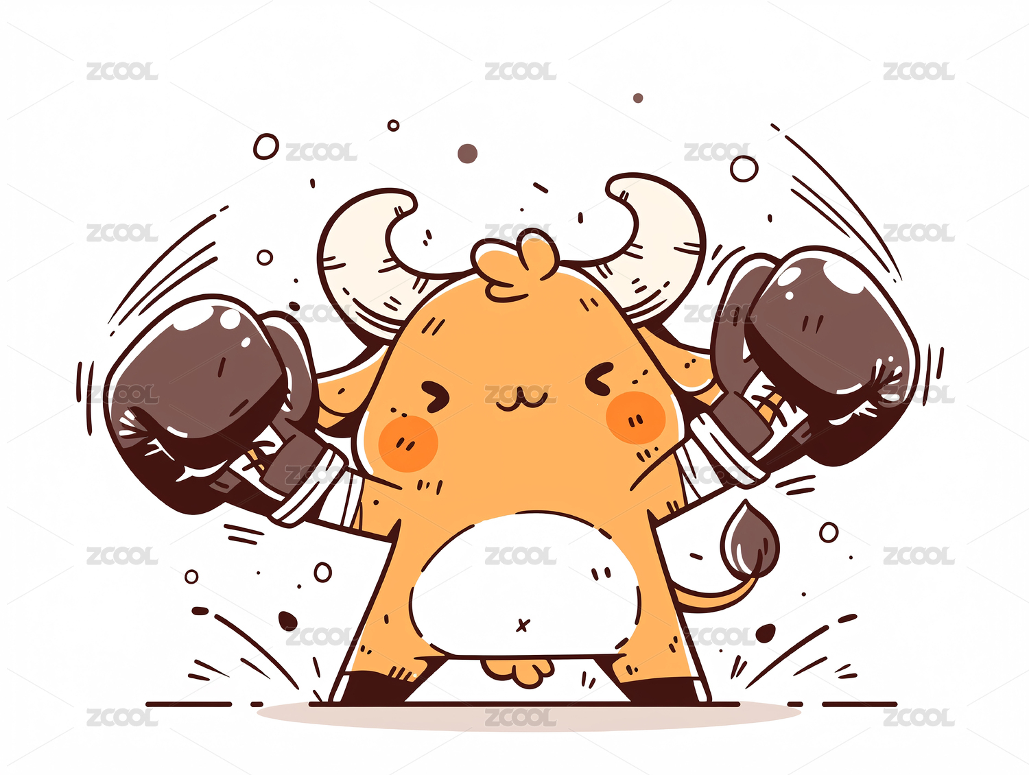 简单风格卡通牛举起杠铃的装饰印花插画图案