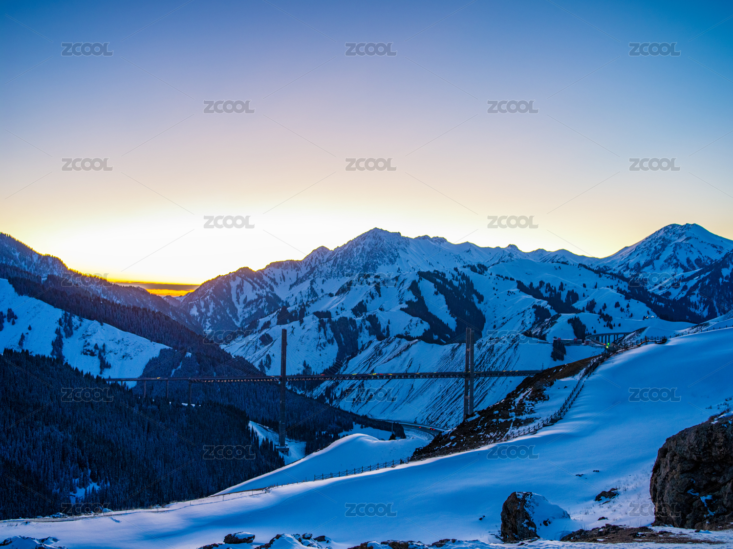 中国新疆博尔塔拉州博乐市果子沟大桥雪景