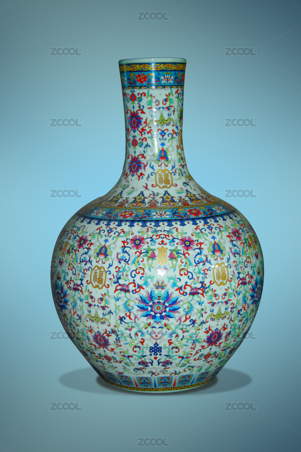 故宫博物院文物乾隆粉彩缠枝莲纹天球瓶插画