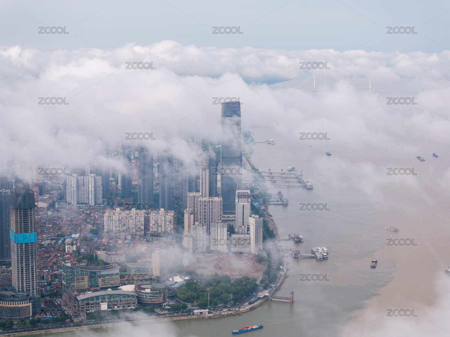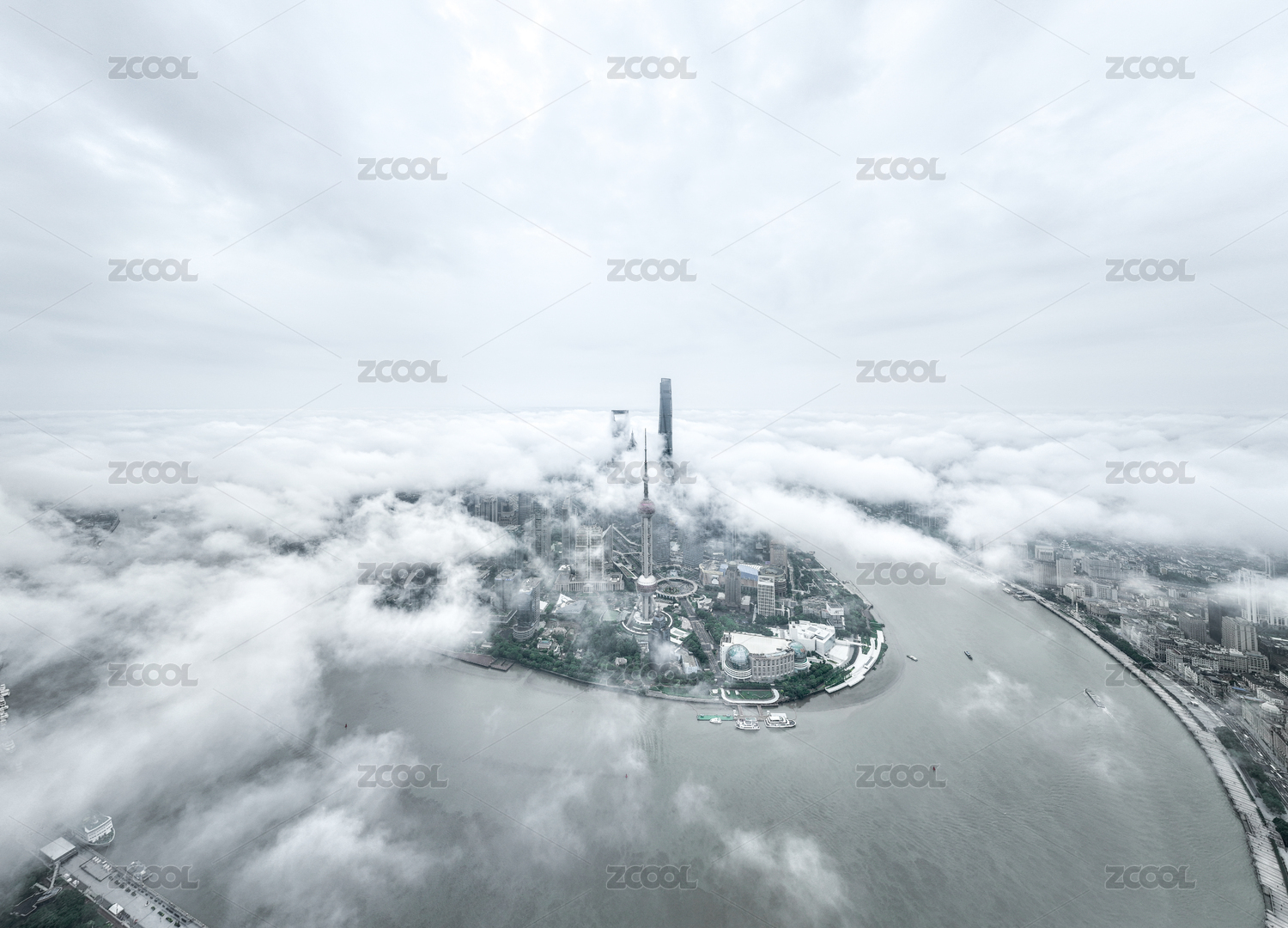 上海,平流雾,黄浦江,建筑,地标,摩天大楼,陆家嘴,CBD,天际线,天空