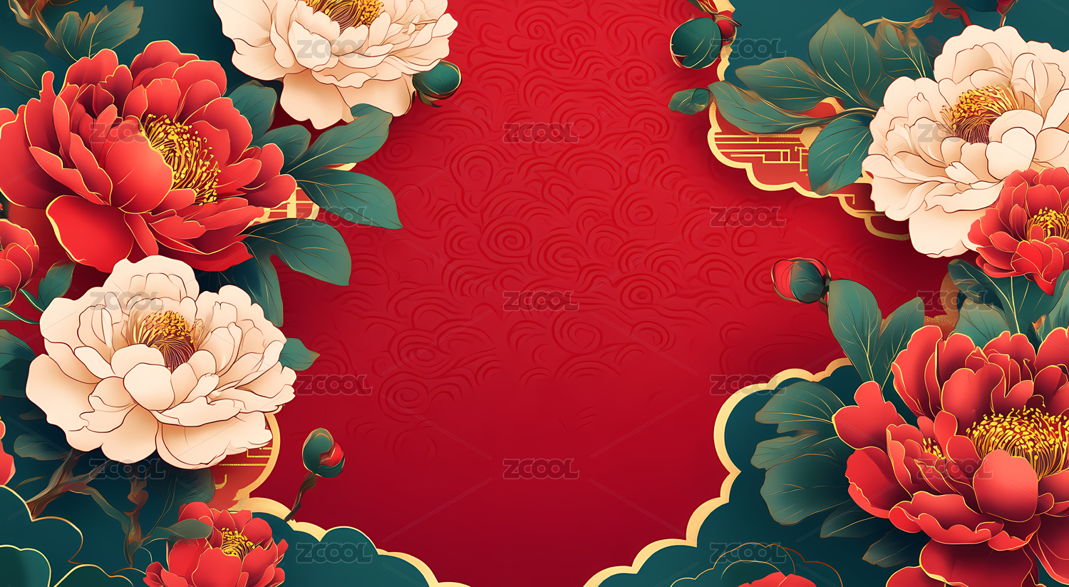 牡丹,水墨,中国风,国潮,花卉,花朵,植物,盛开,绽放,花瓣