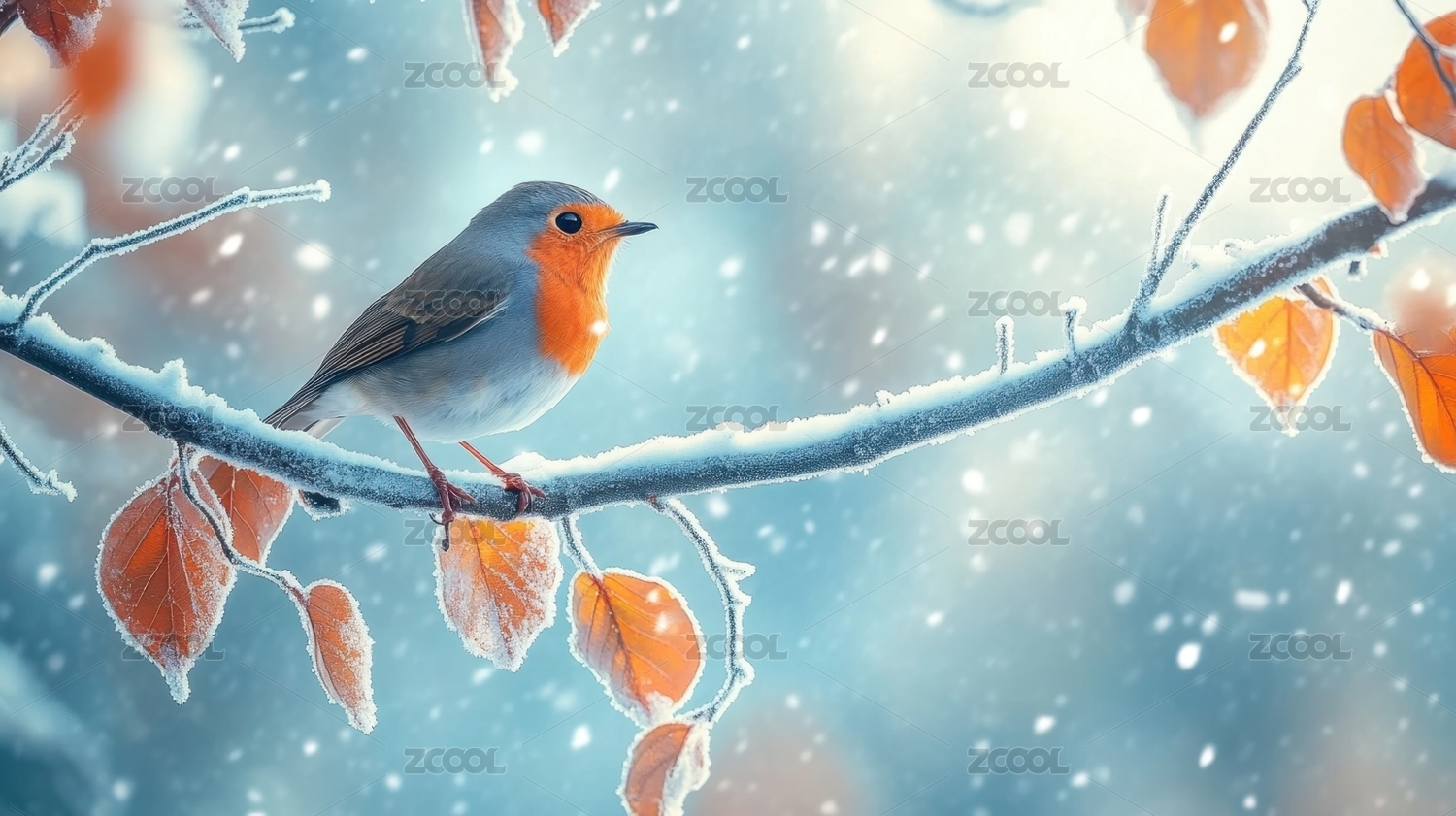 冬天站在树枝上色彩斑斓的小鸟壁纸背景