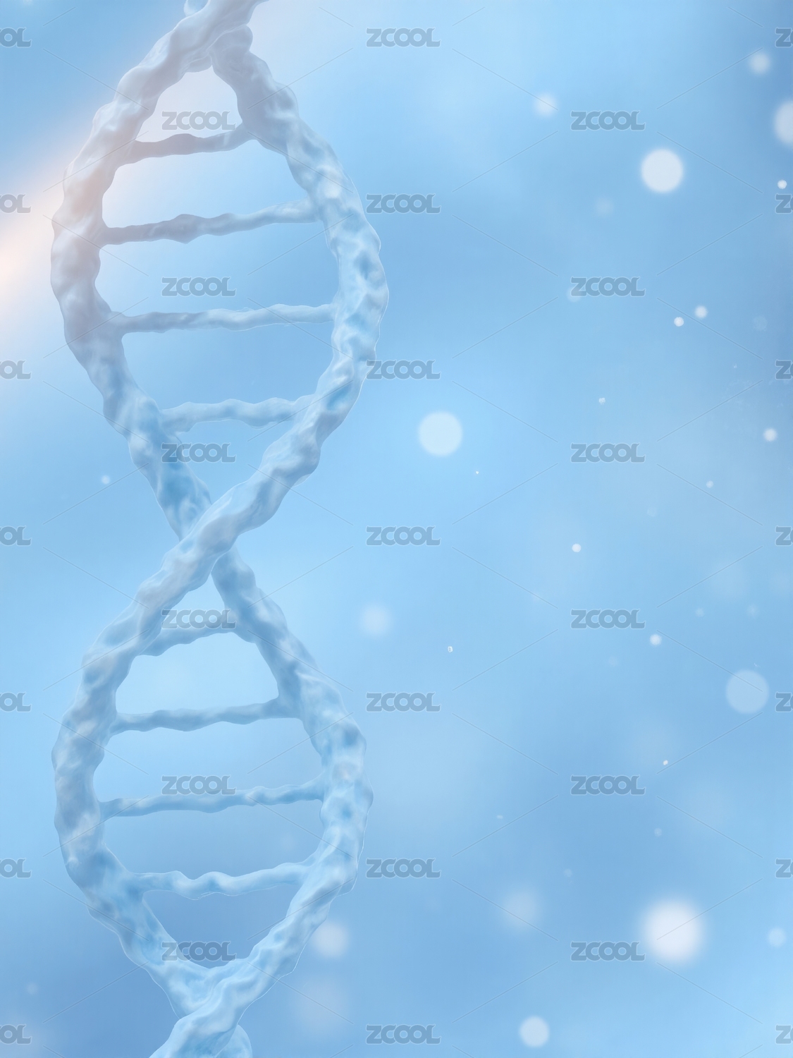 白色DNA分子与浅蓝背景