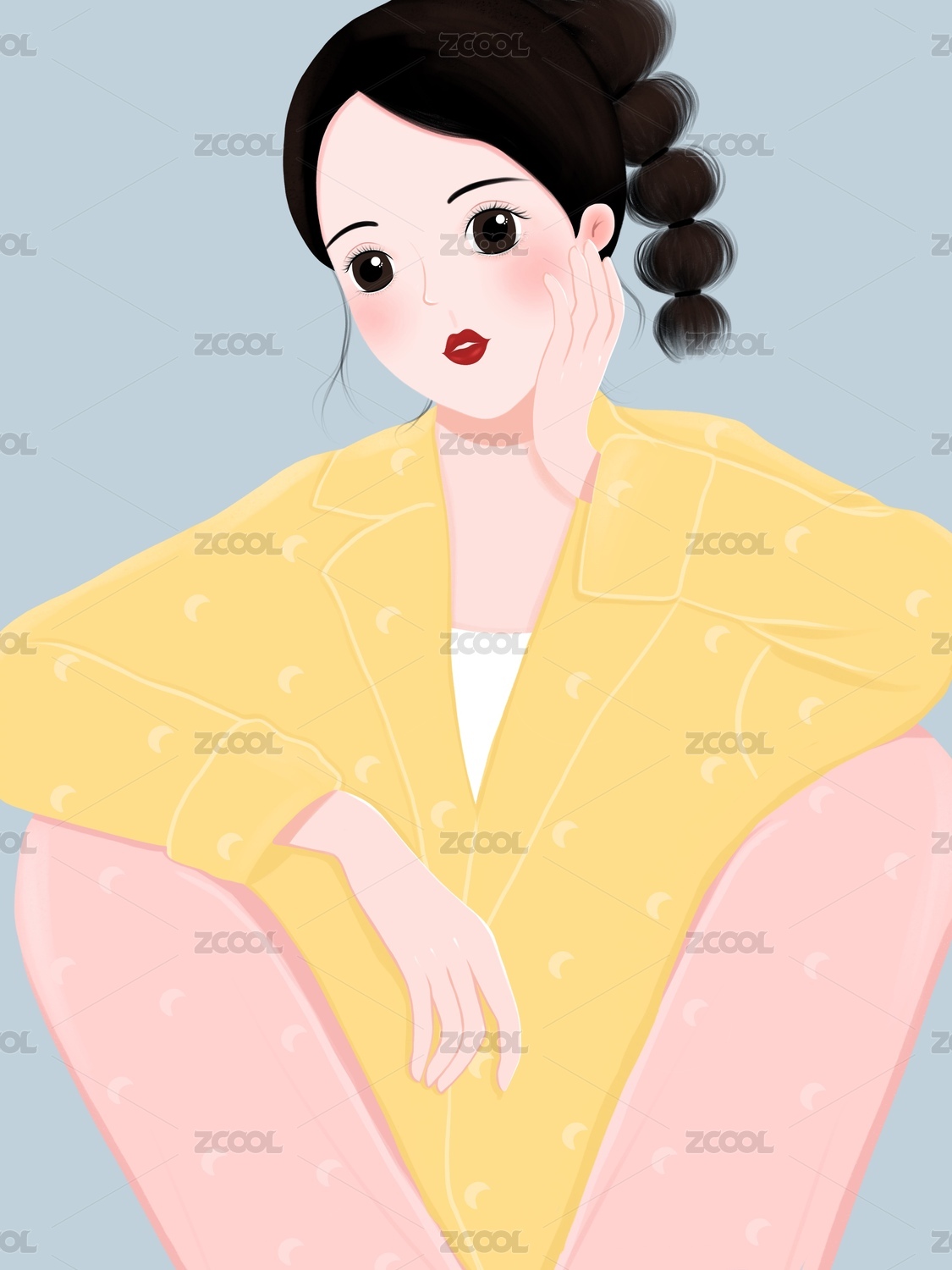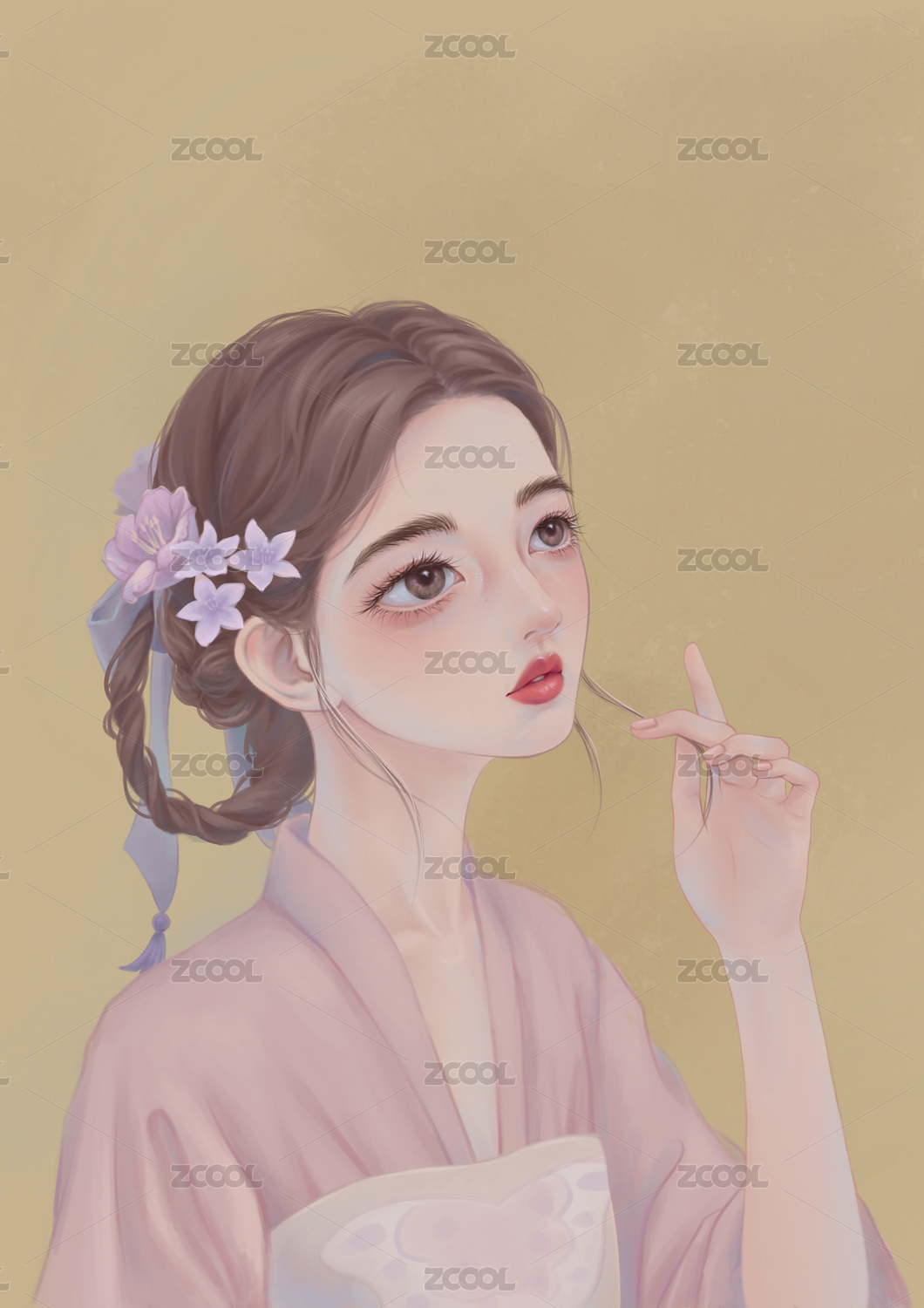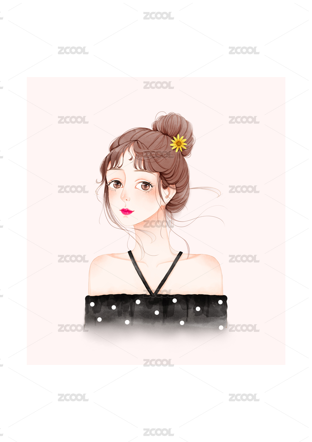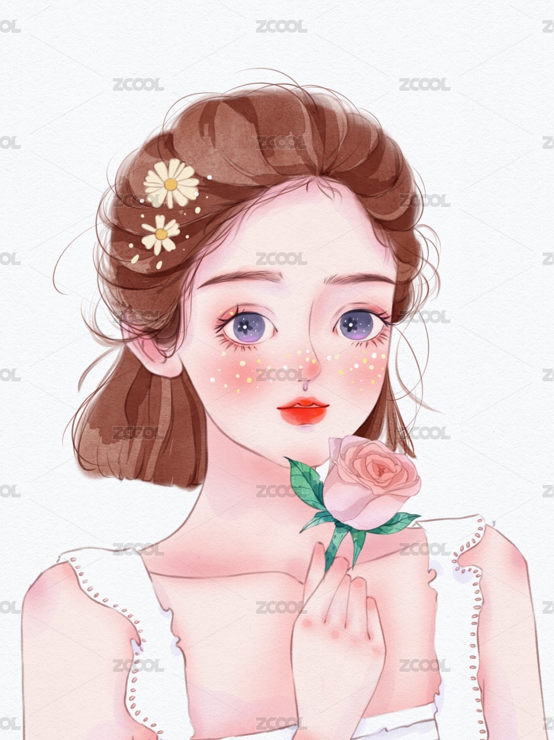 清新治愈系玫瑰花少女人物-板绘仿水彩