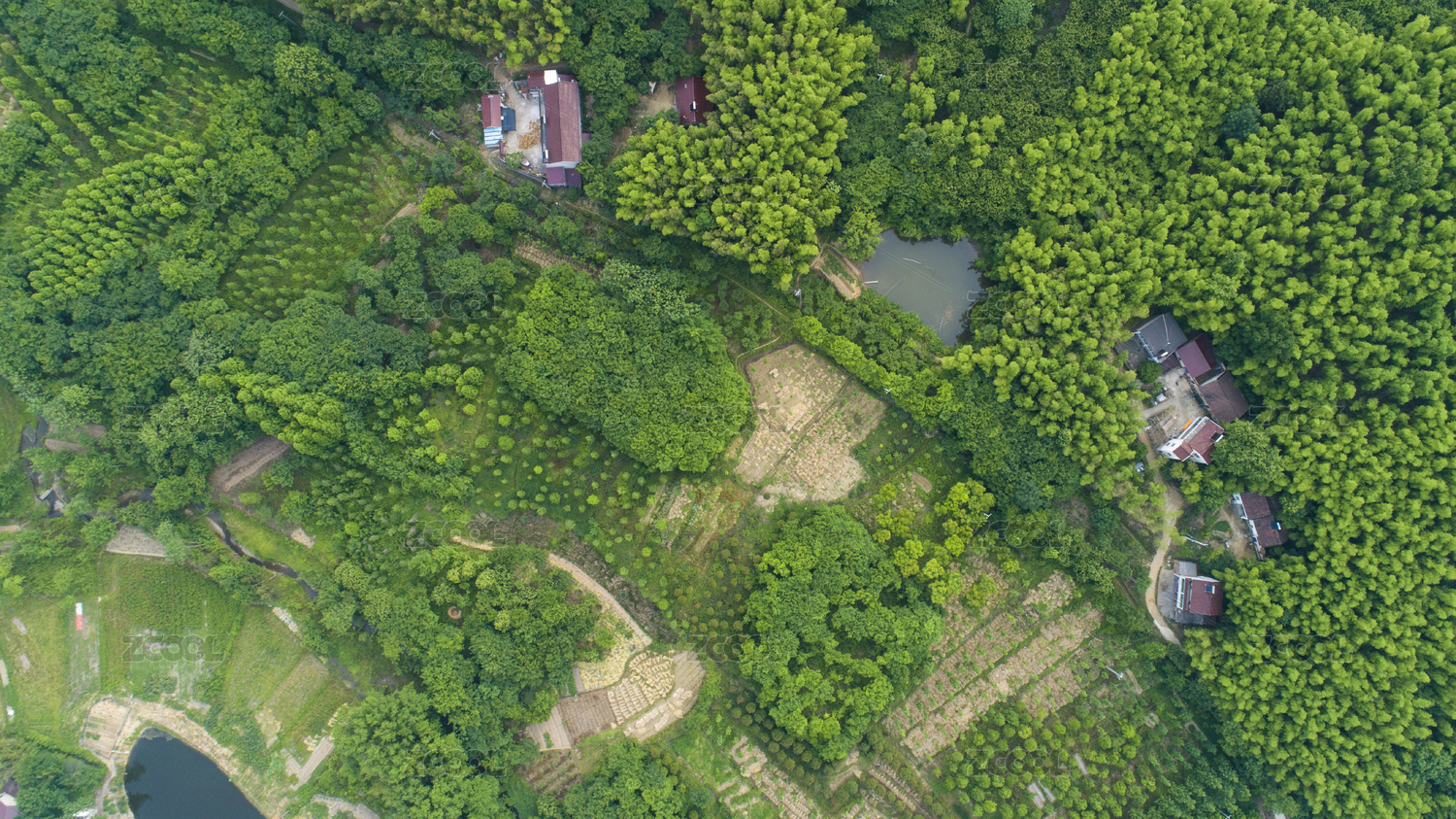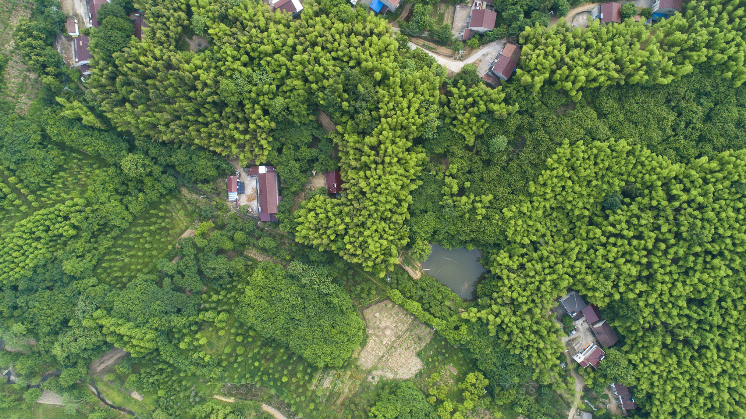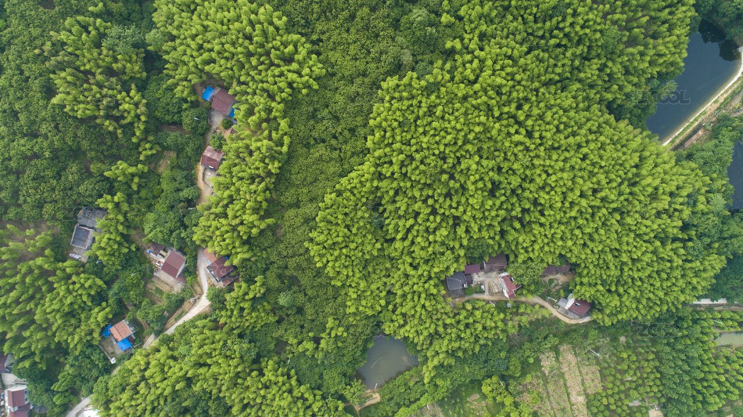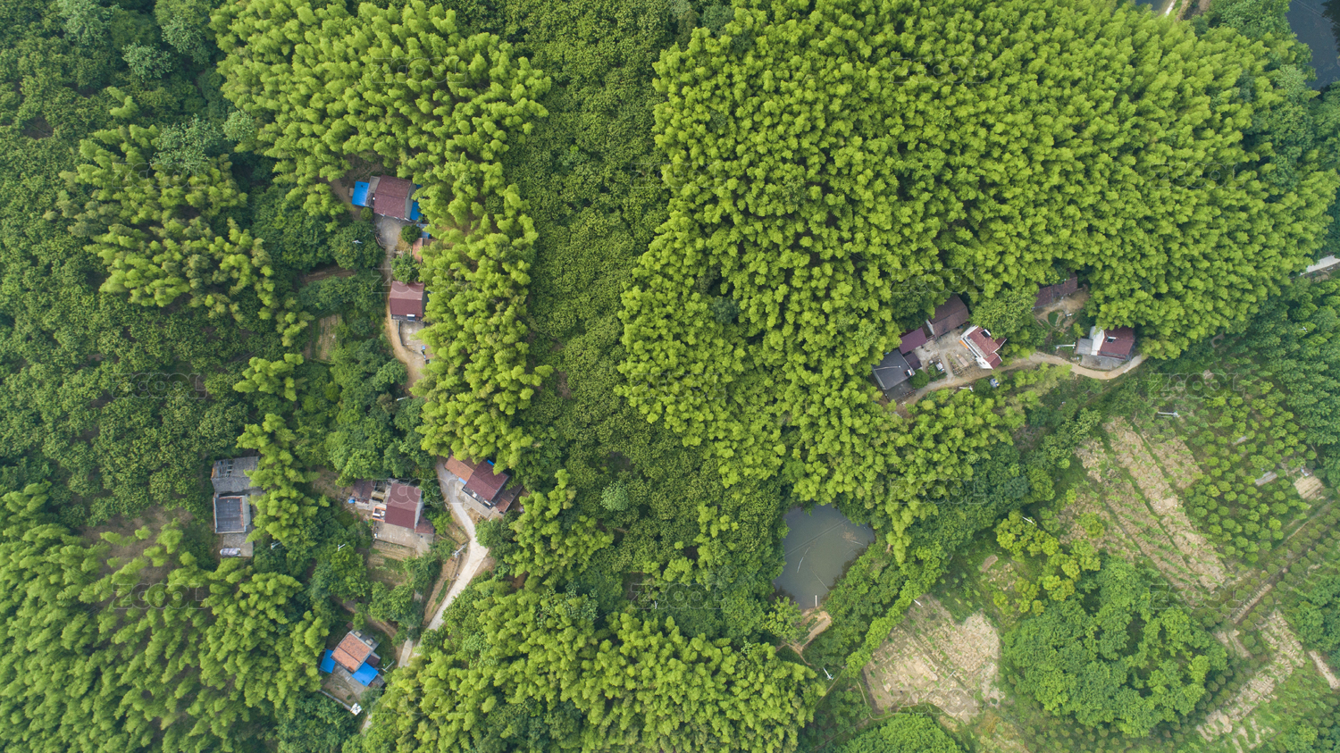 航拍中国江苏常州溧阳天目湖镇竹林掩映村落