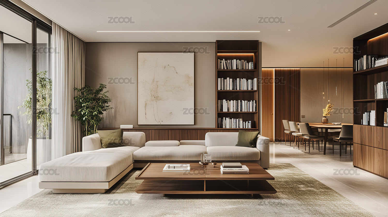 极简中式现代客厅内部