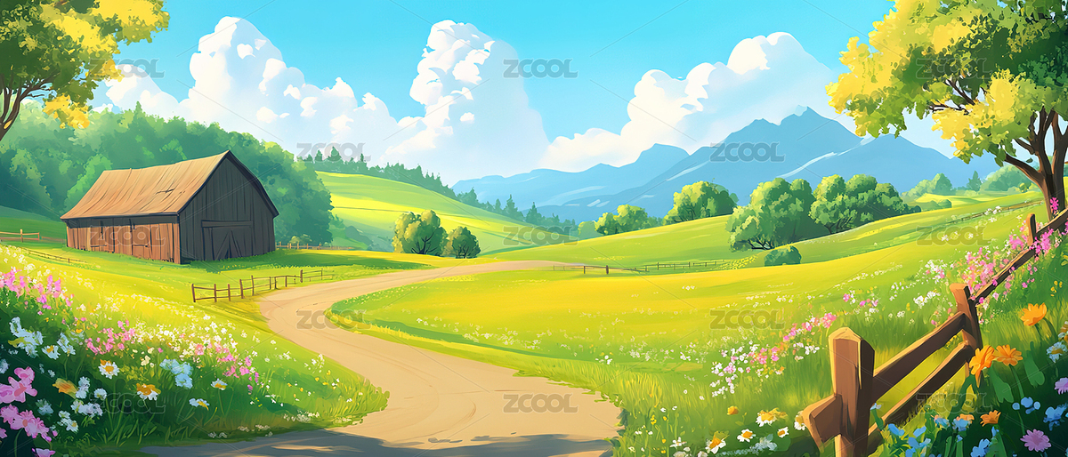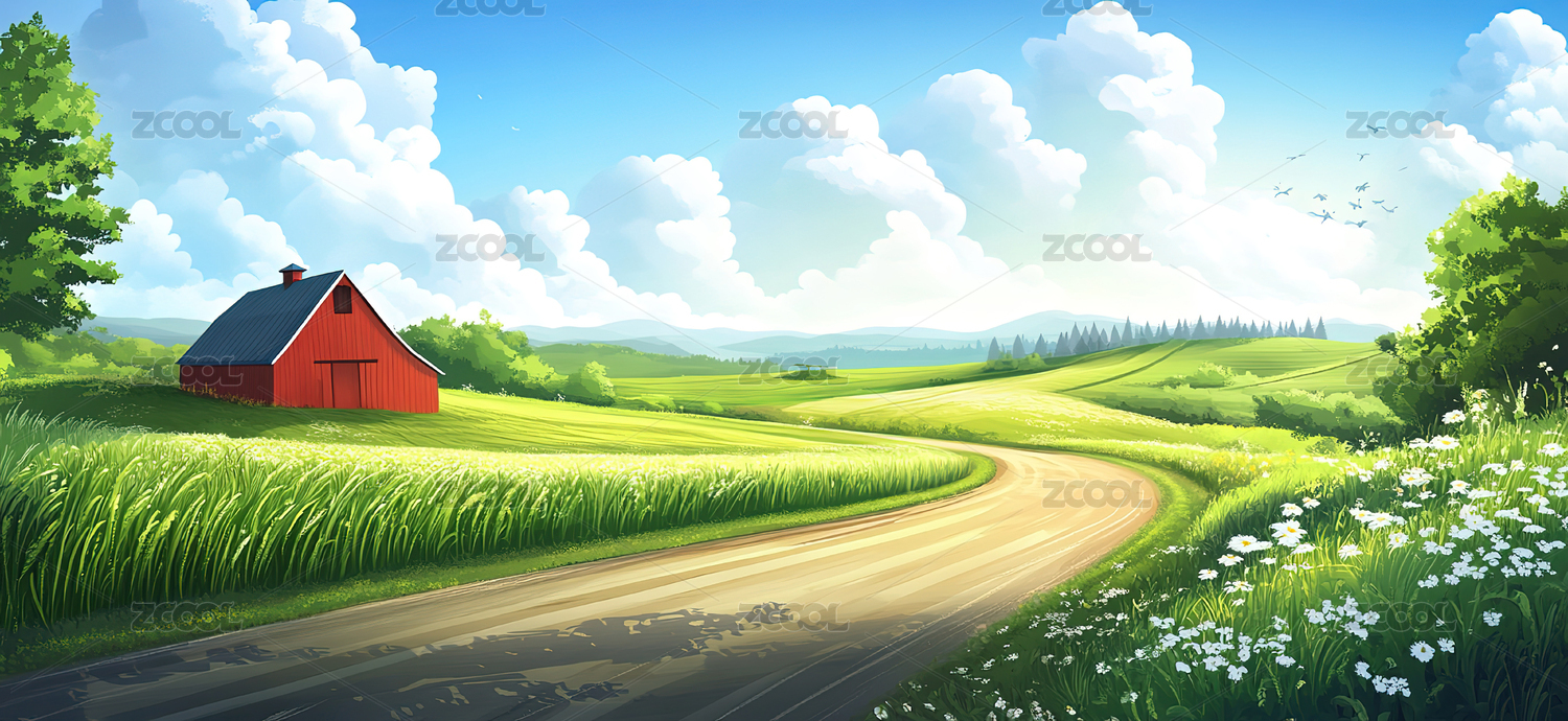 乡村田园风光插画