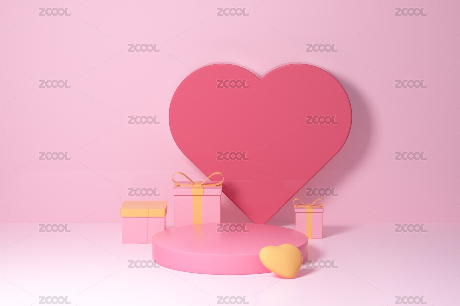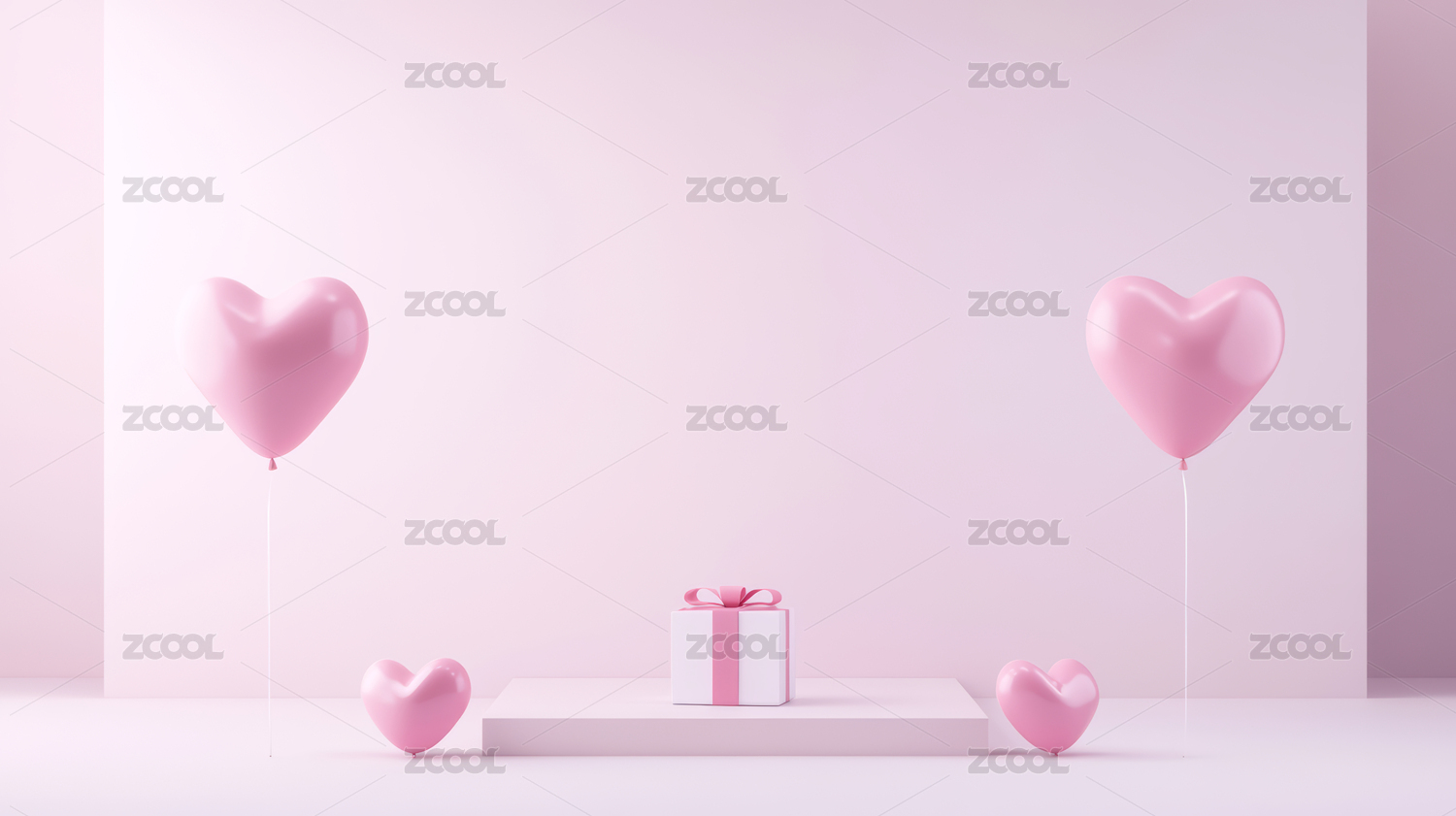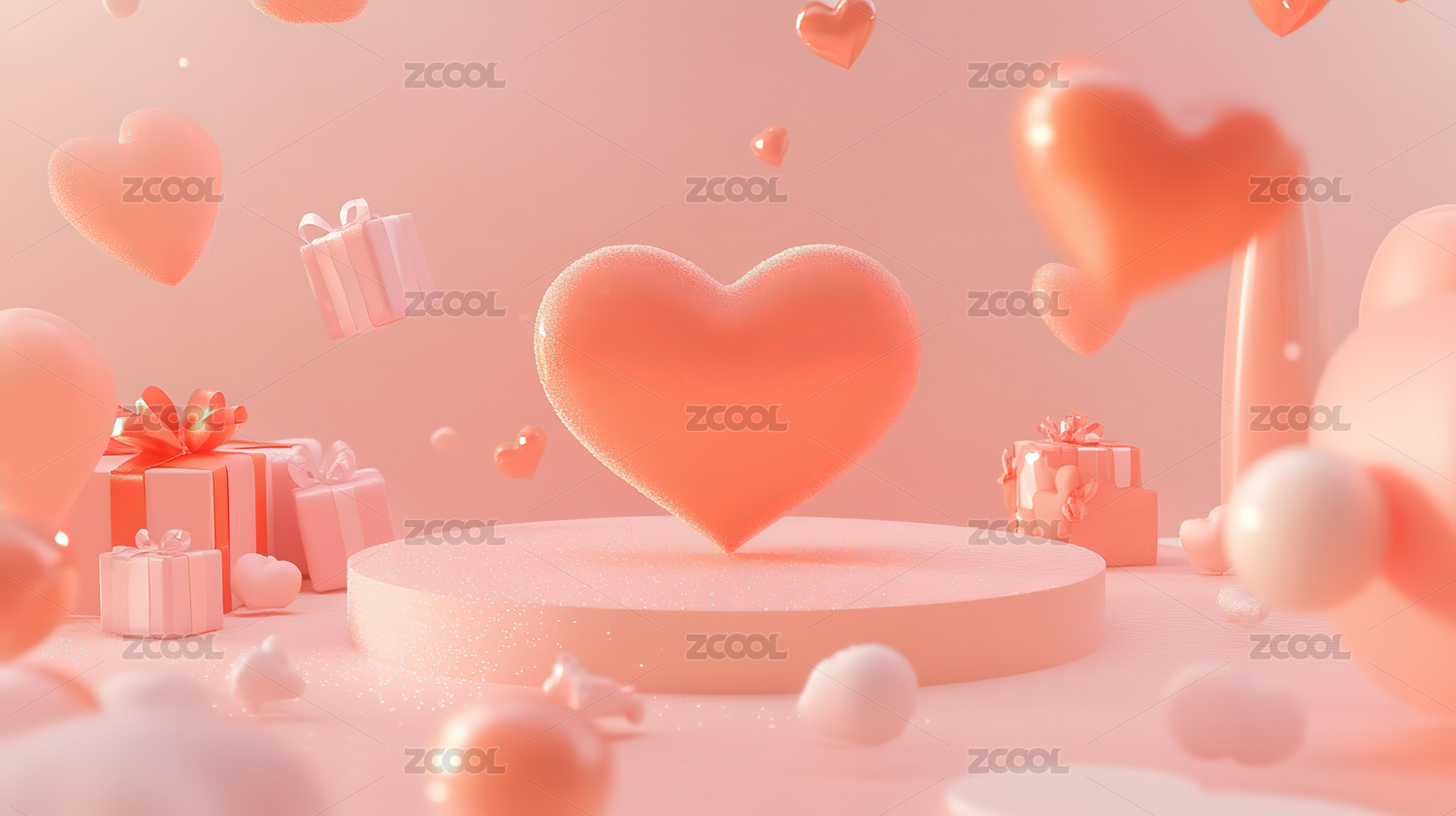 粉色,礼品盒,三维,虚拟空间,心形,气球,展示台,情人节,七夕,电商