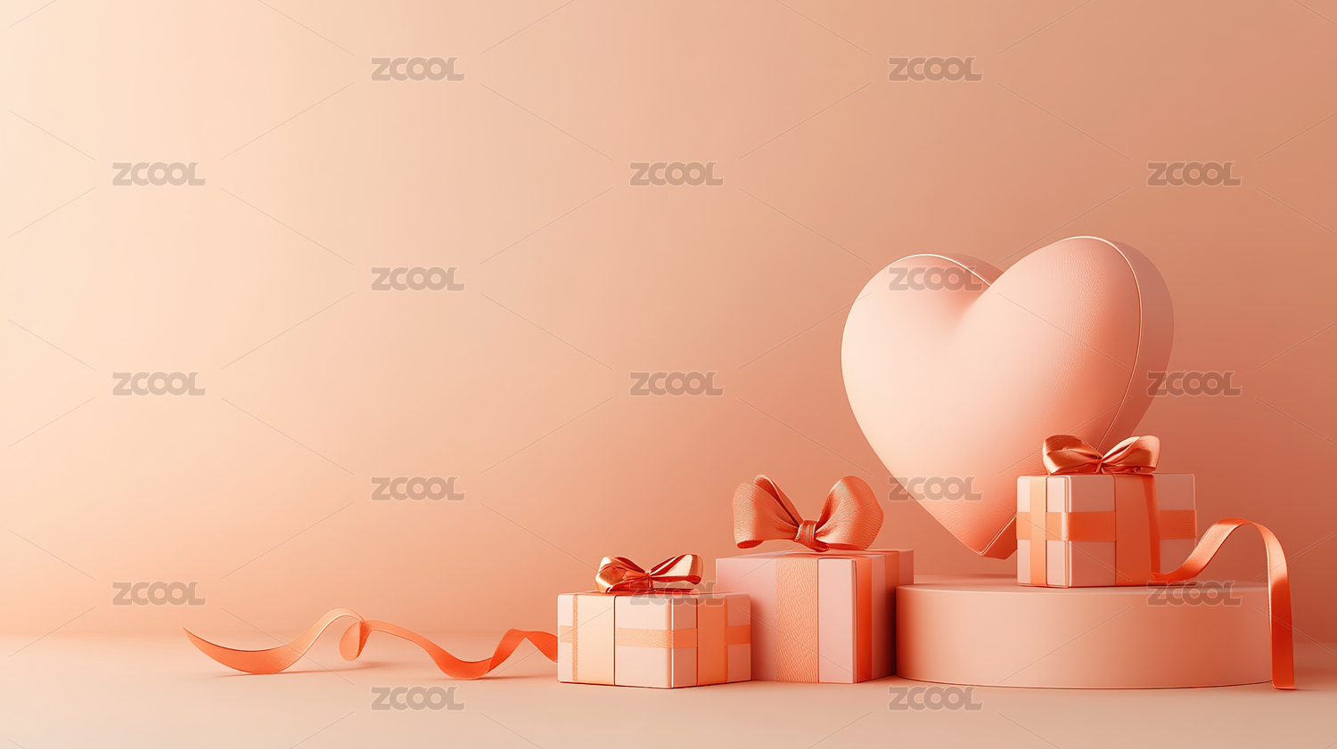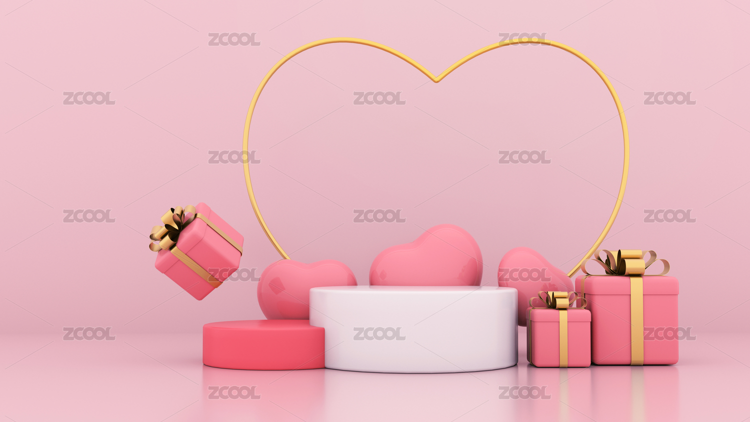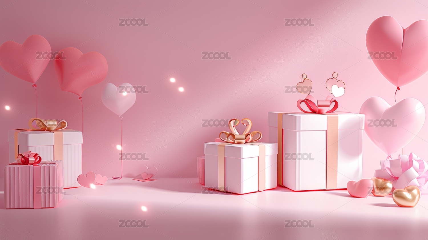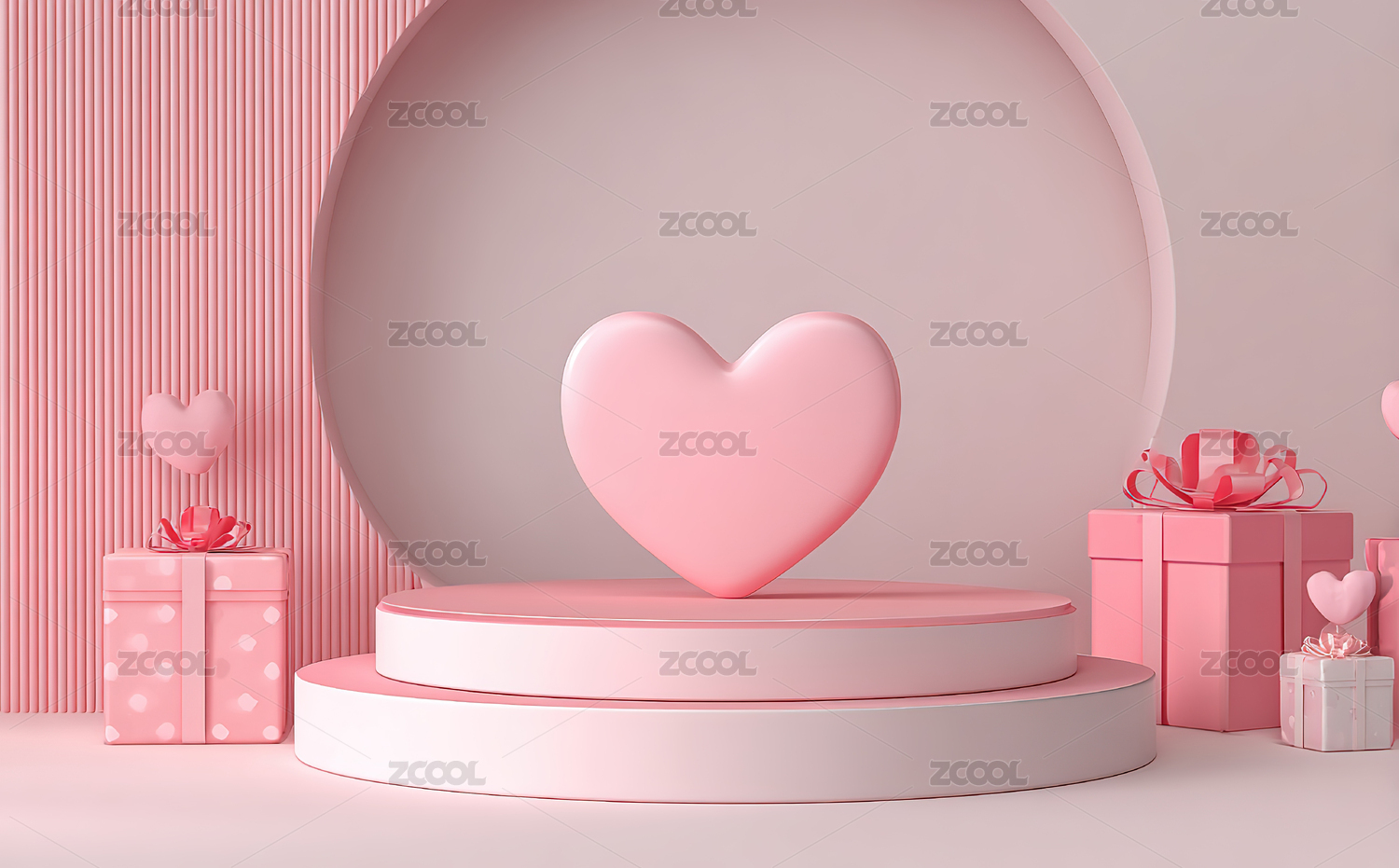 粉色,礼品盒,三维,虚拟空间,心形,气球,展示台,情人节,七夕,电商