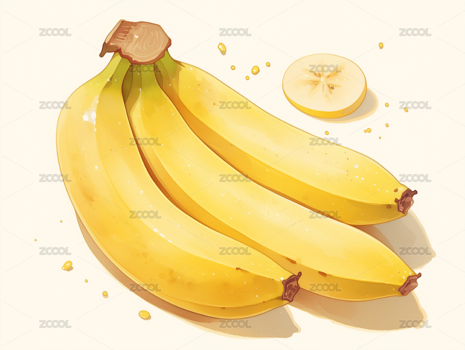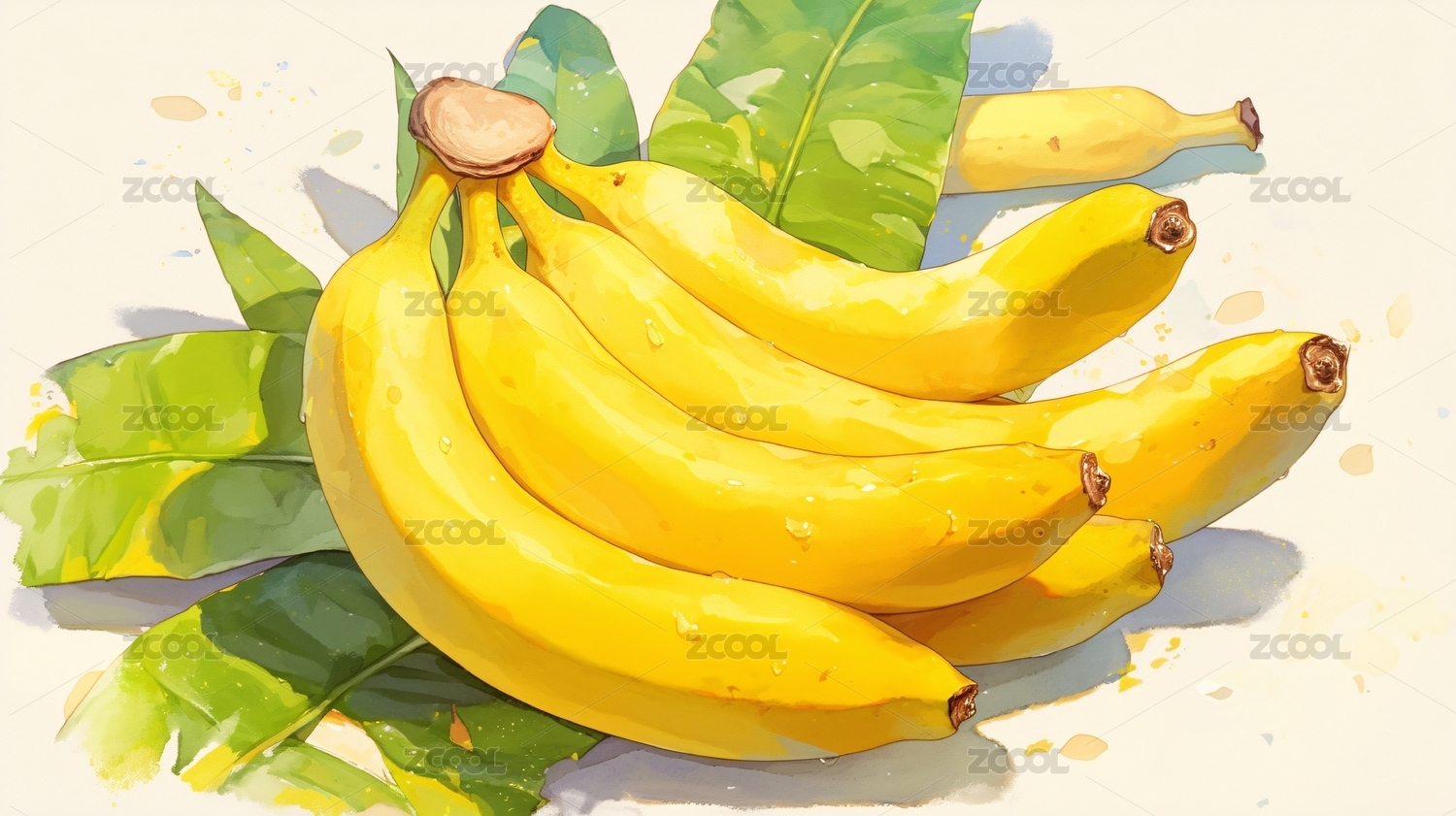 香蕉,插画,水粉画,叶子,果肉,果实,水果,果汁,成分,新鲜