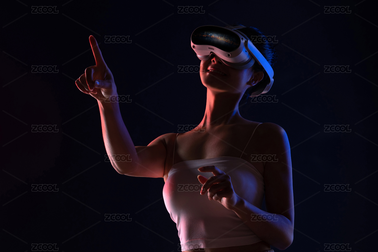 戴VR眼镜的青年女人