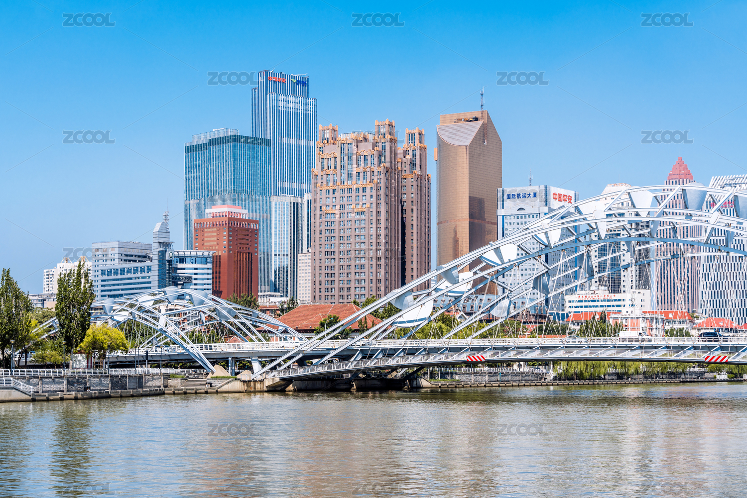 中国天津,海河风光,桥梁建筑,城市风光,地标建筑,办公大楼,城市天际线,现代,高楼大厦,摩天大楼