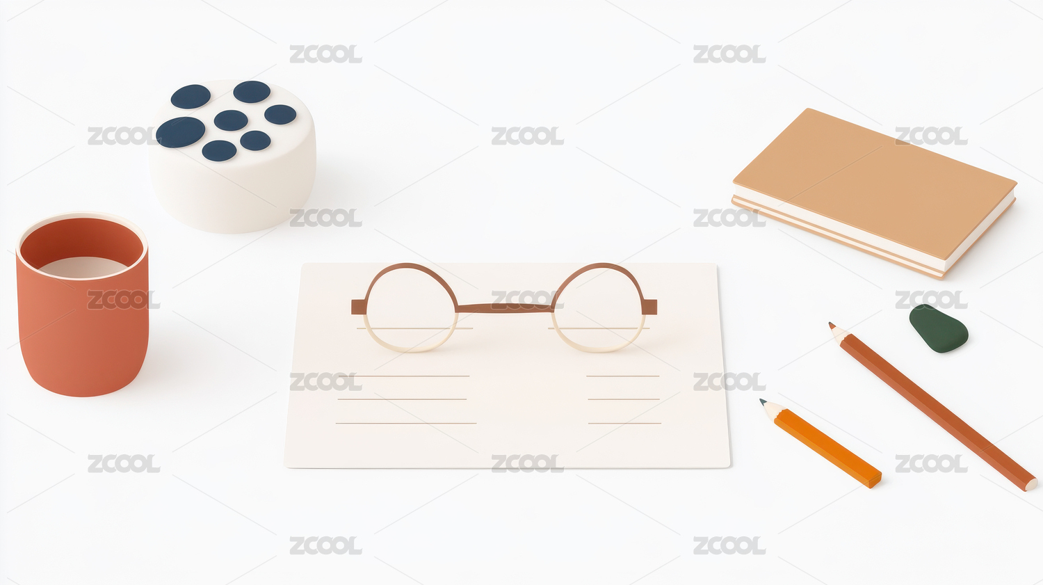简约办公桌上的文具和眼镜