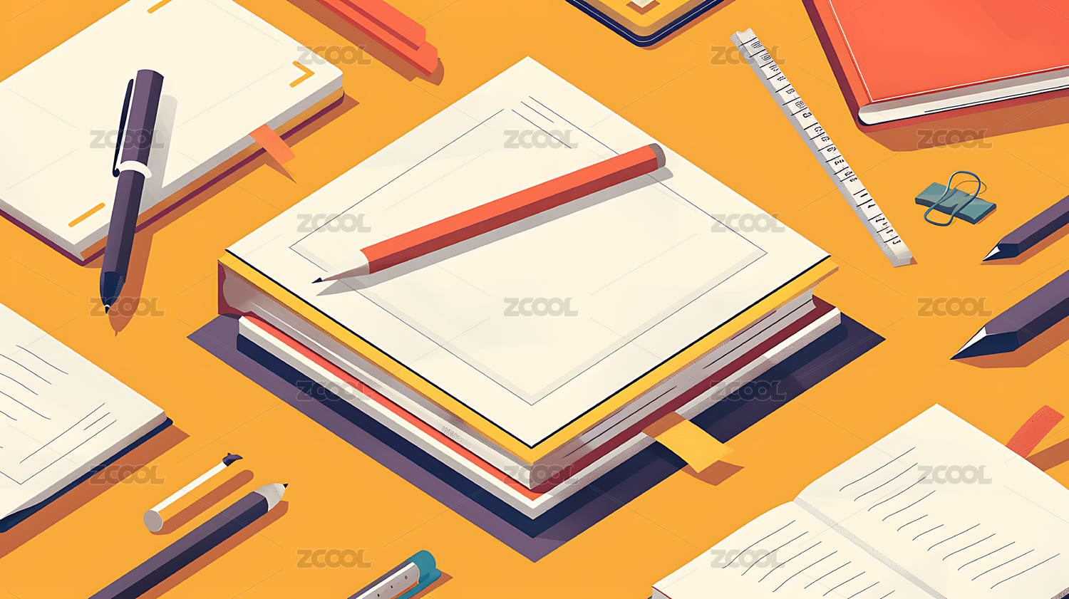 3D卡通笔记本和铅笔插画图标元素