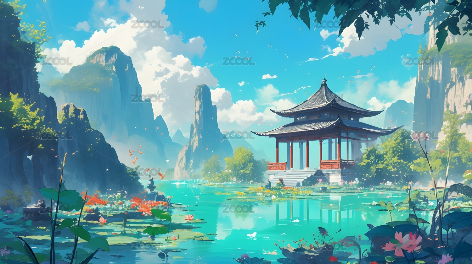 唯美国风奇幻壁纸手绘插画
