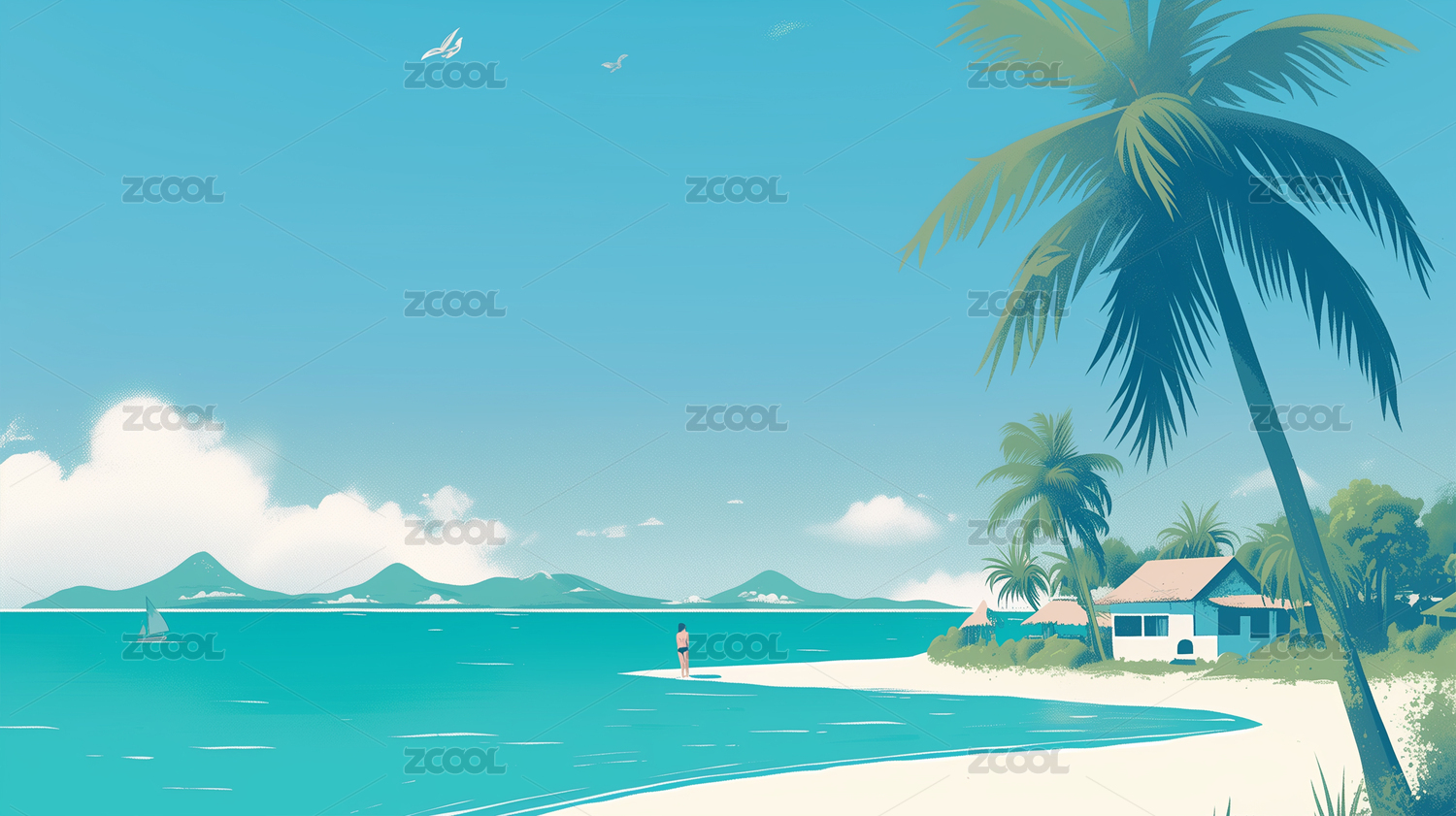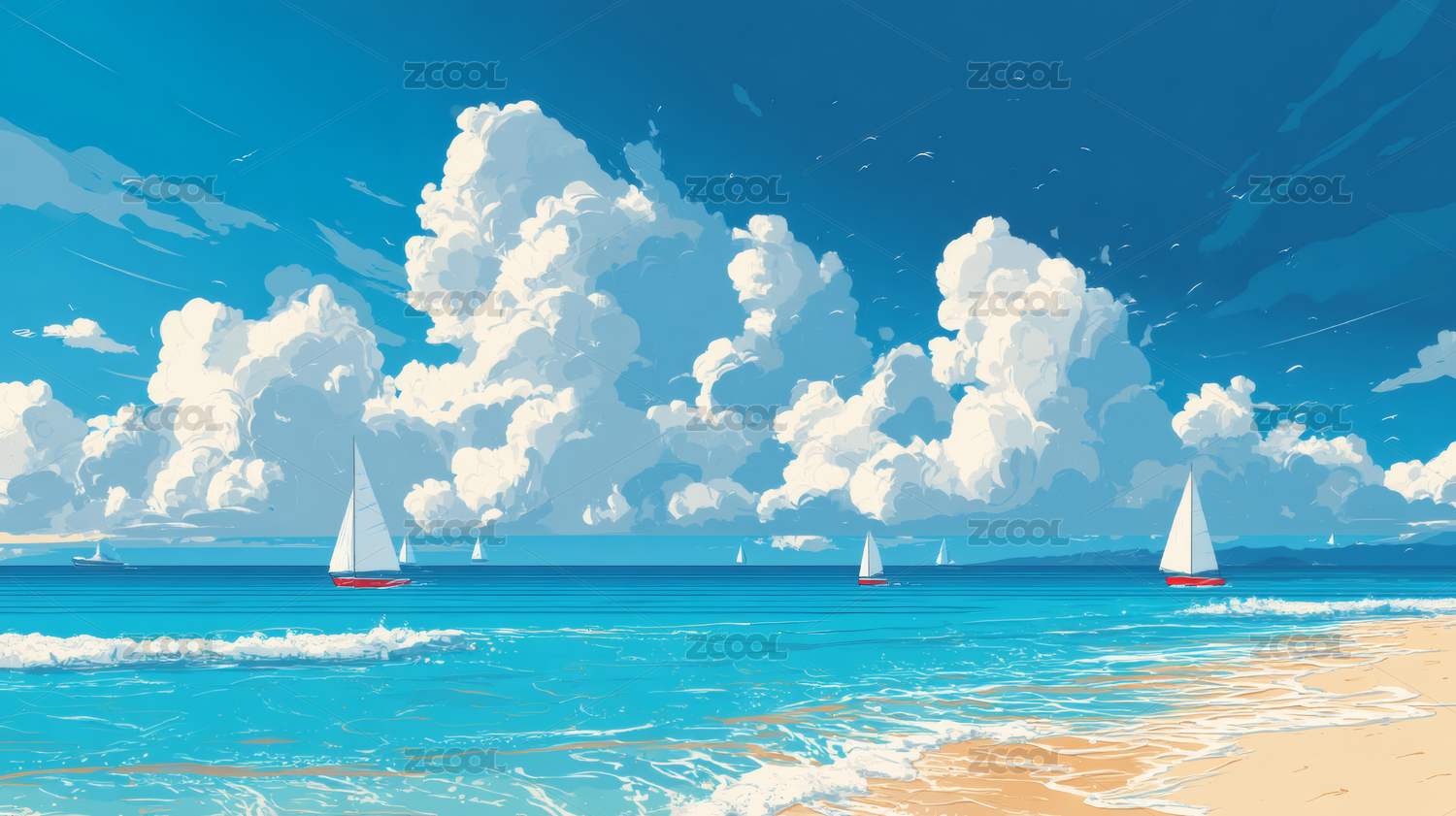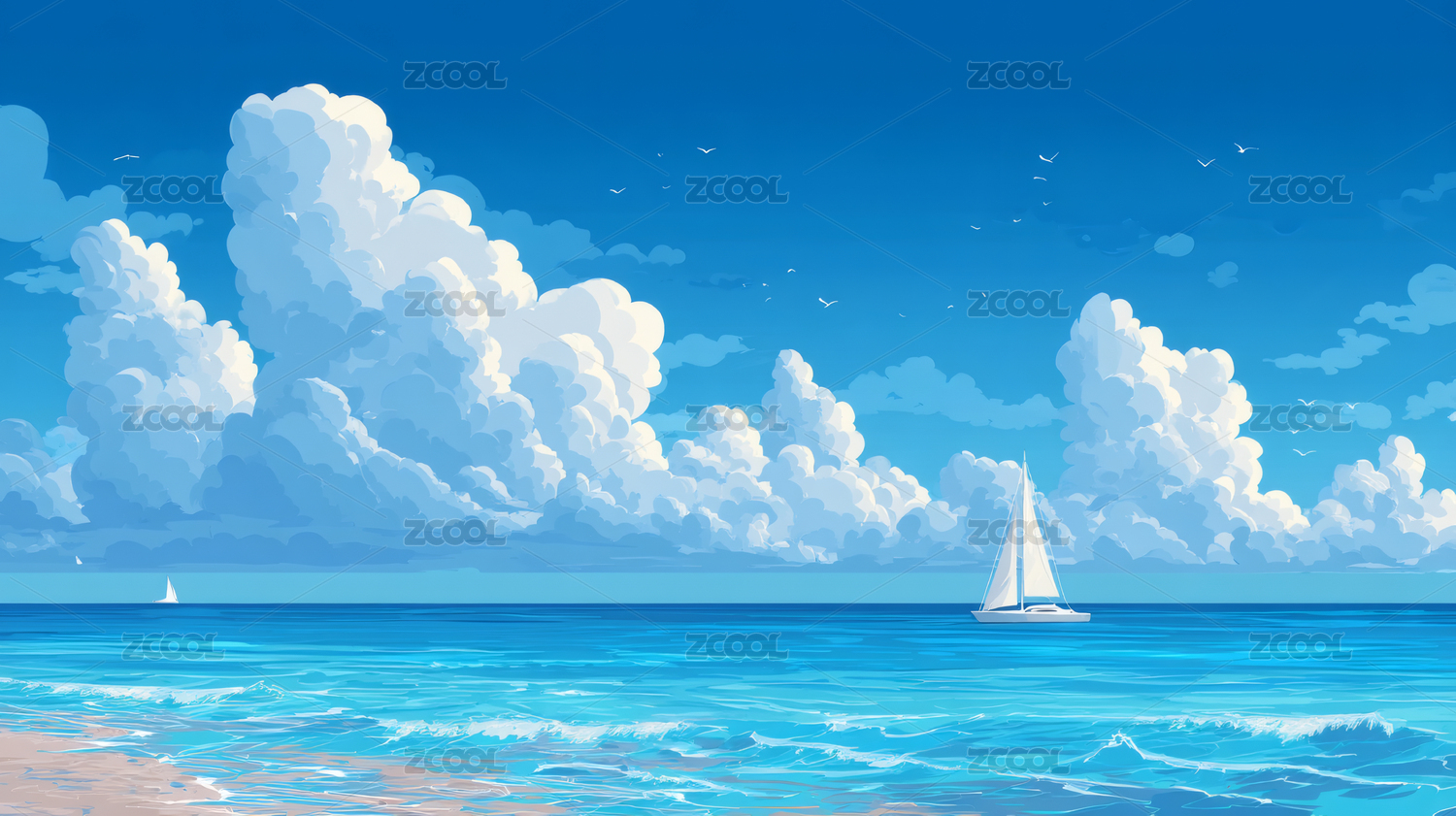 日落,夕阳,大海,帆船,沙滩,海洋,蓝天,白云,椰树