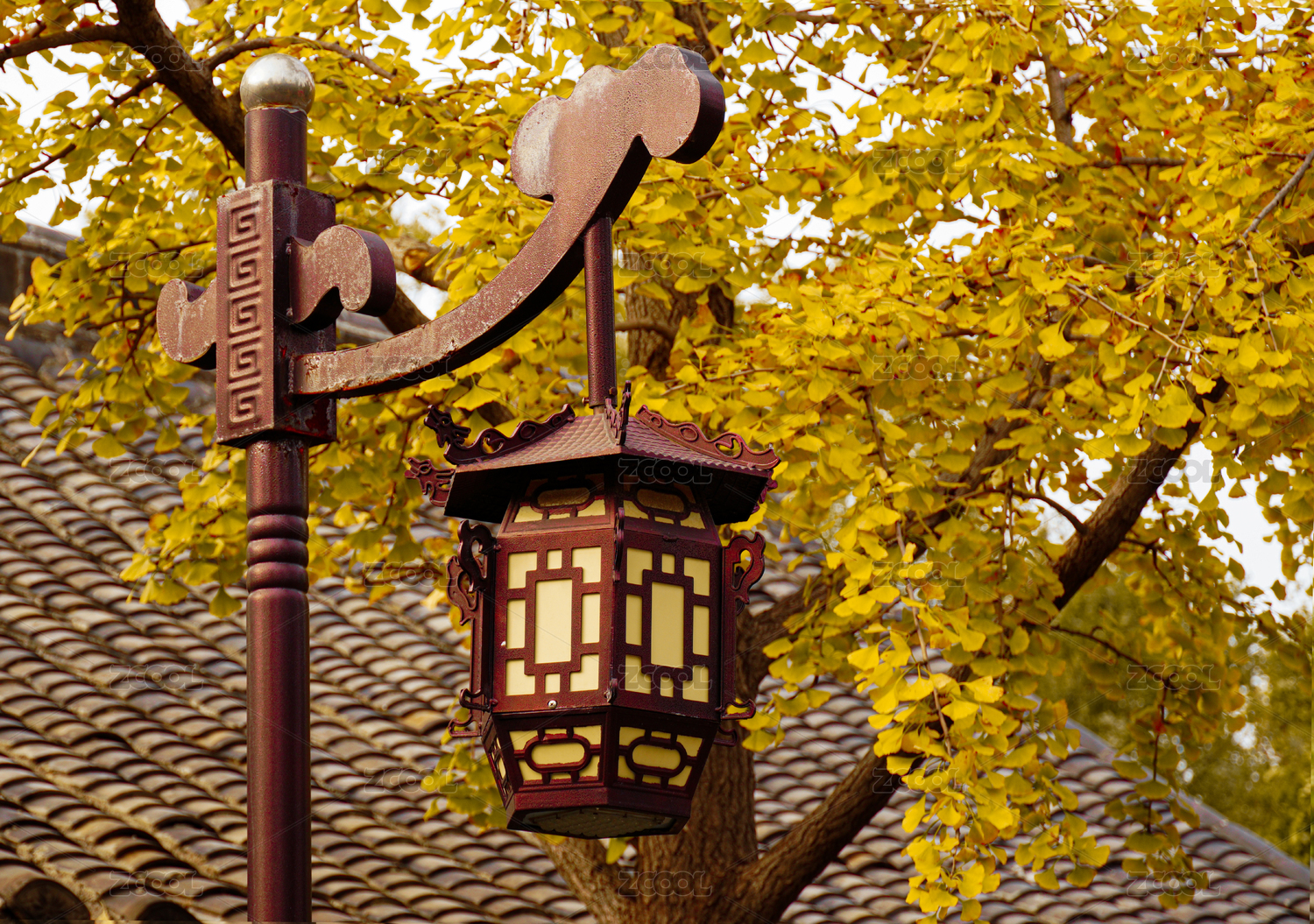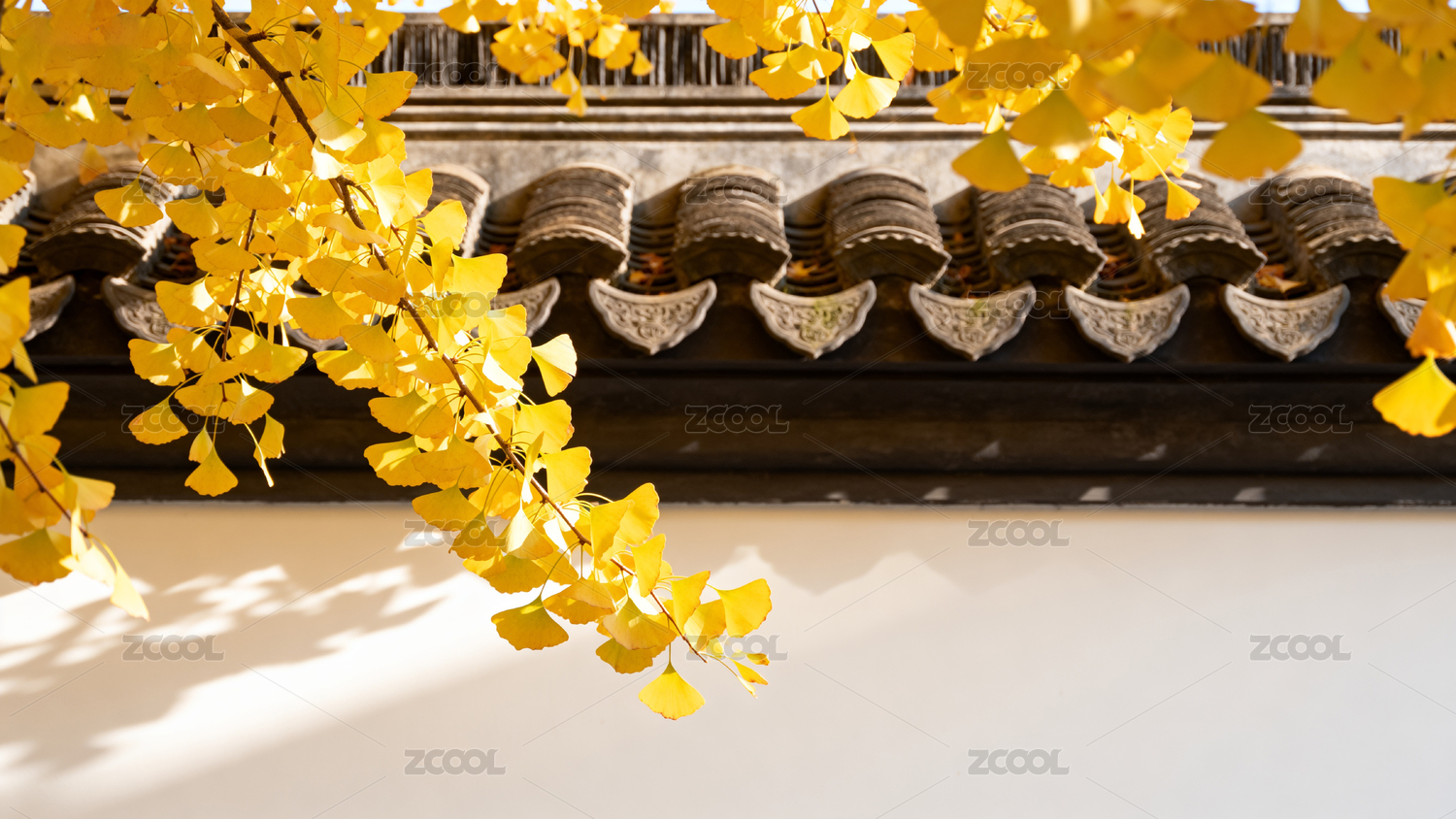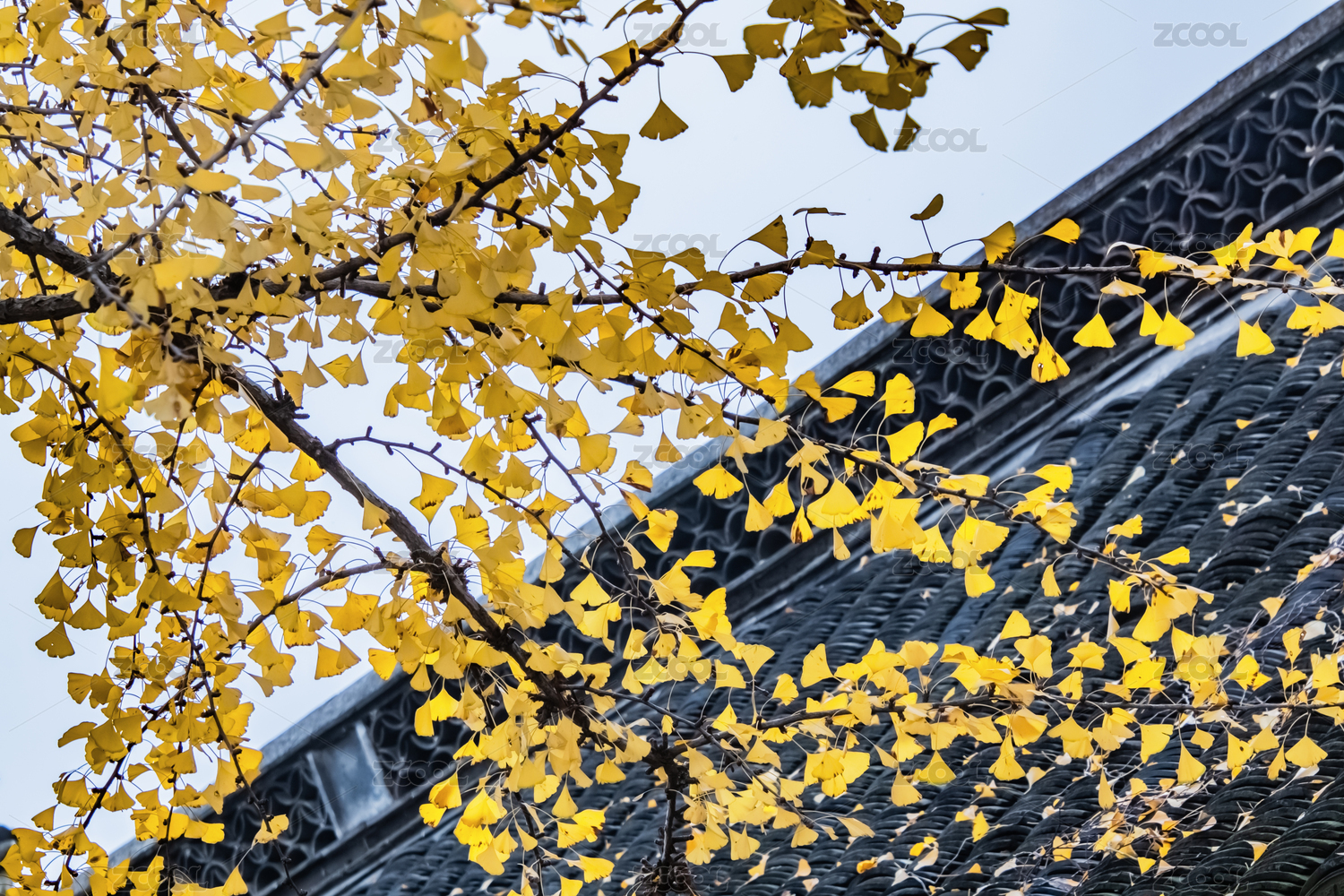 江苏省盐城市大纵湖银杏叶园林古建筑环境