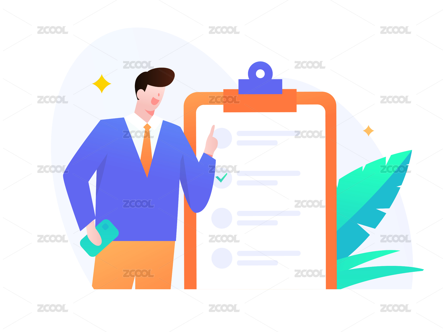 邀请问卷调查, 手绘扁平人物场景创意概念插画