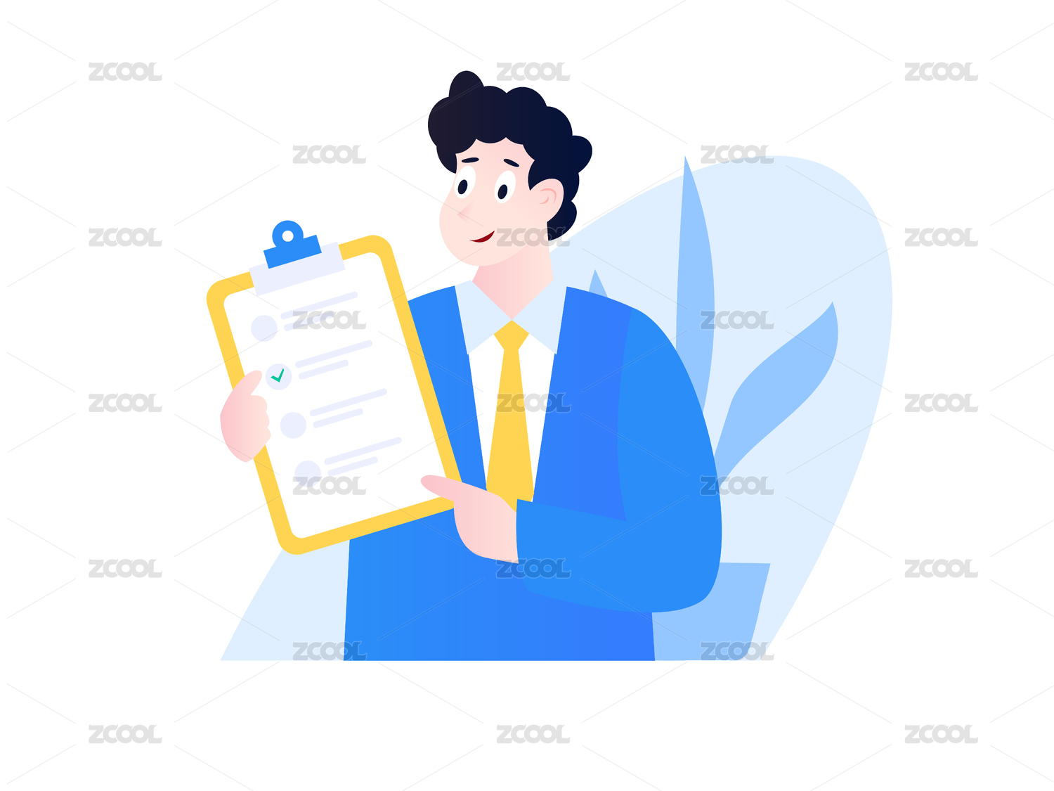 邀请问卷调查的男性, 矢量扁平人物场景创意概念插画